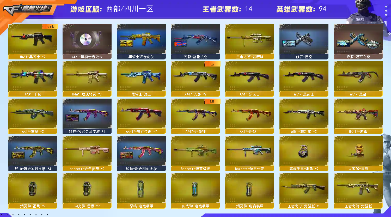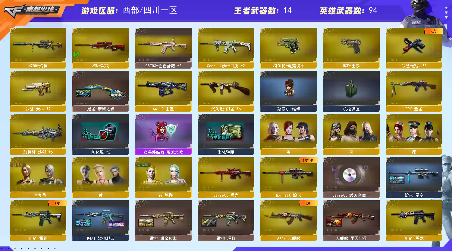 M200-幻神105V USP-雷暴 Scar-白虎 朱雀 雷暴套 王势王魄 蝴蝶-斯太尔 +6炼狱