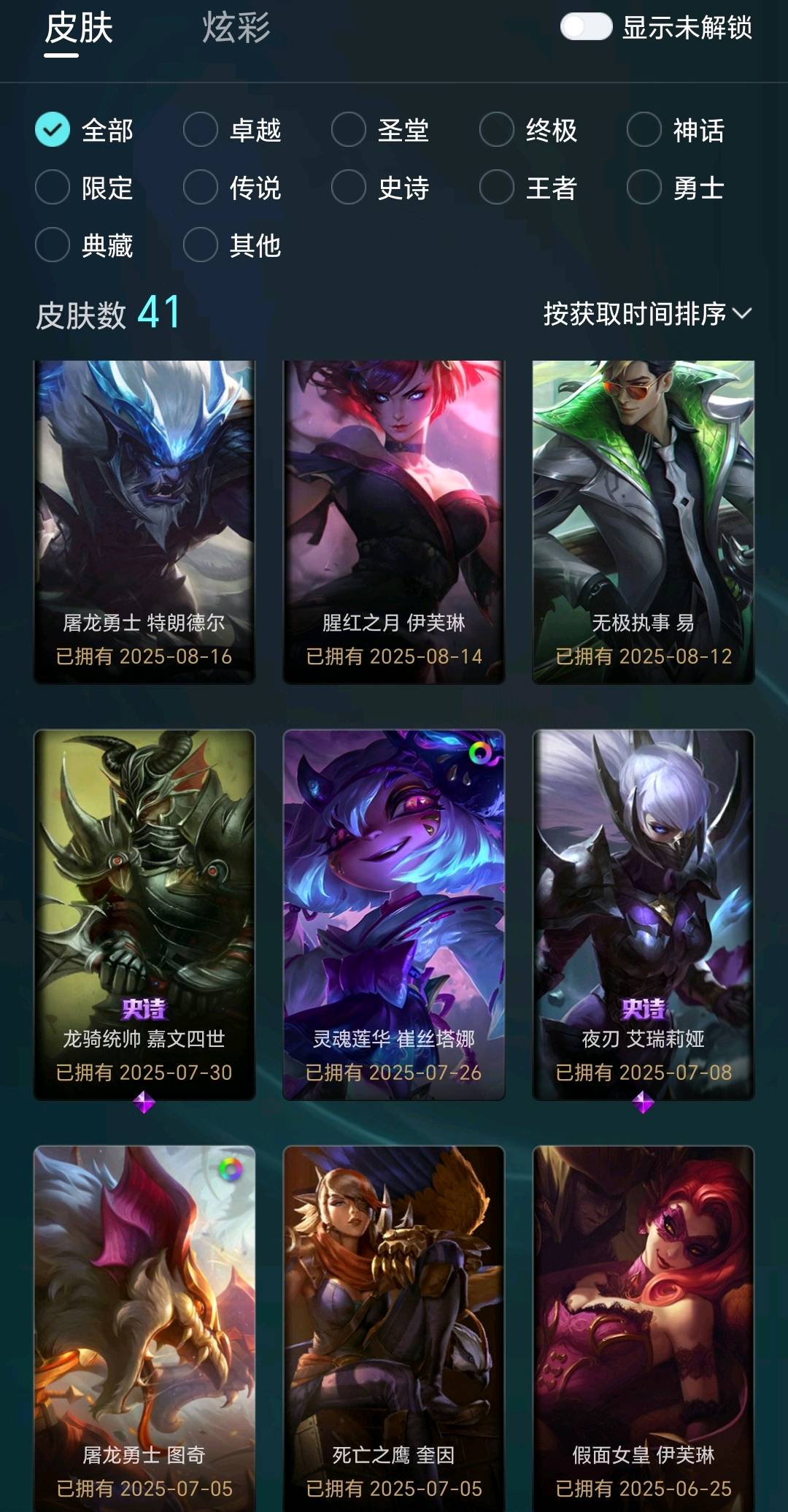 闭月之颜卡特⭐天煞☆劫⭐咖啡甜心格温⭐无极执事剑圣⭐黎明使者薇古丝⭐屠龙勇士图奇⭐灵魂莲华提莫☆小炮