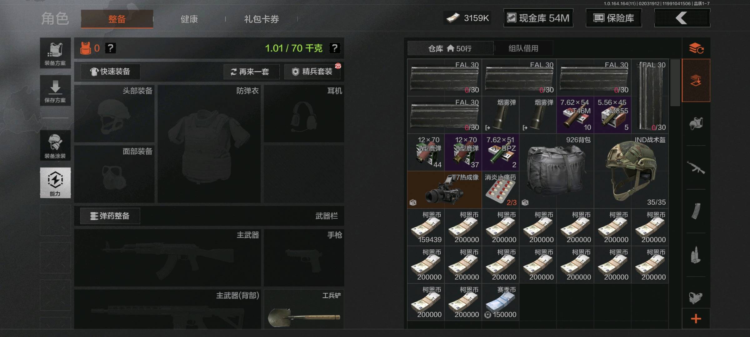 纯币3m,仓库价值3.7m t7一个 现金库不可用 五级信誉 长期有,还有如图装备 ,账号如标题和描述。