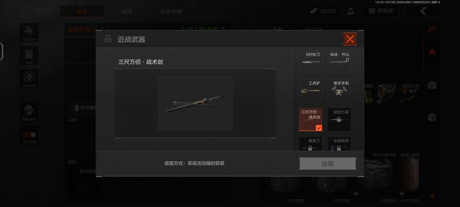 破产号 绕指玉鸾战术甲胄 三尺万仞战术剑 寒牙手刺 玉鸾桂枝手套 角弓得控手套 3金枪