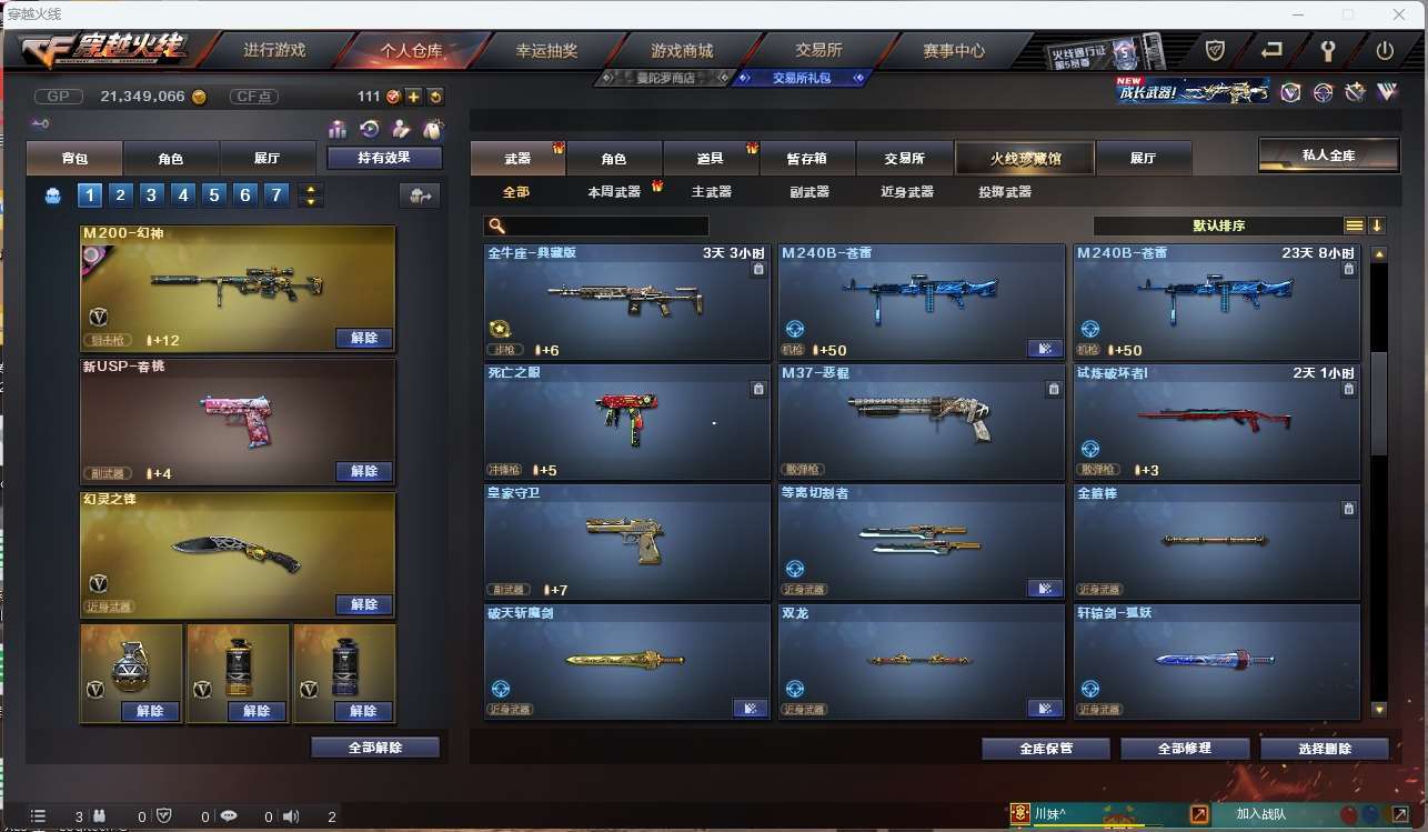 【m200幻神+宠儿皮肤】【qbz金色蔷薇】【hk417朱雀+音效卡】【极光+音效卡】【火麒麟+冠军之心皮肤+ag战队皮肤】【雷神+荣耀之魄皮肤+宠儿皮肤】【屠龙*2+荣耀之锋皮肤】【黑龙 黑骑士 黑武士 黑鲨 无影神兵利器 烈火动感闪耀 猩红传说 毁灭 裁决*2 炼狱 烈龙云海游龙】【修罗 天神 天神动感闪耀】【龙啸 麒麟刺*2 幻灵之锋*2 屠龙动感闪耀 擎天云海游龙 龙啸烈火龙威】【火麒麟灵狐】【幻灵手雷套】【四防:王者零国色天香 王者潘多拉 王者影豹】【角色:乔伊教练 雅晴 王者复仇 云海玲珑】【虎牙炫彩背包 云海游龙炫彩背包 炫彩背包 动感闪耀炫彩背包】