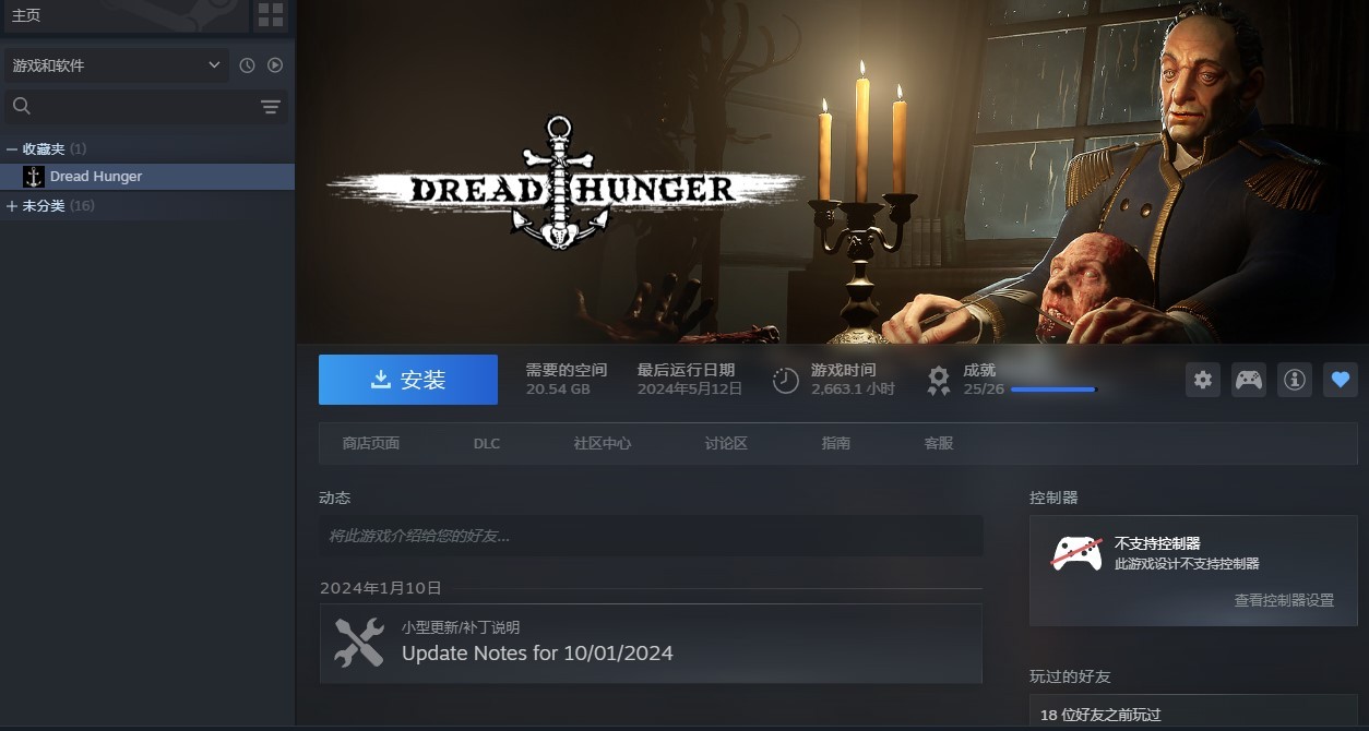 搜(鲸鱼)恐惧饥饿-Dread Hunger⭐2000+小时⭐全声望皮肤⭐可联机⭐包周更合适