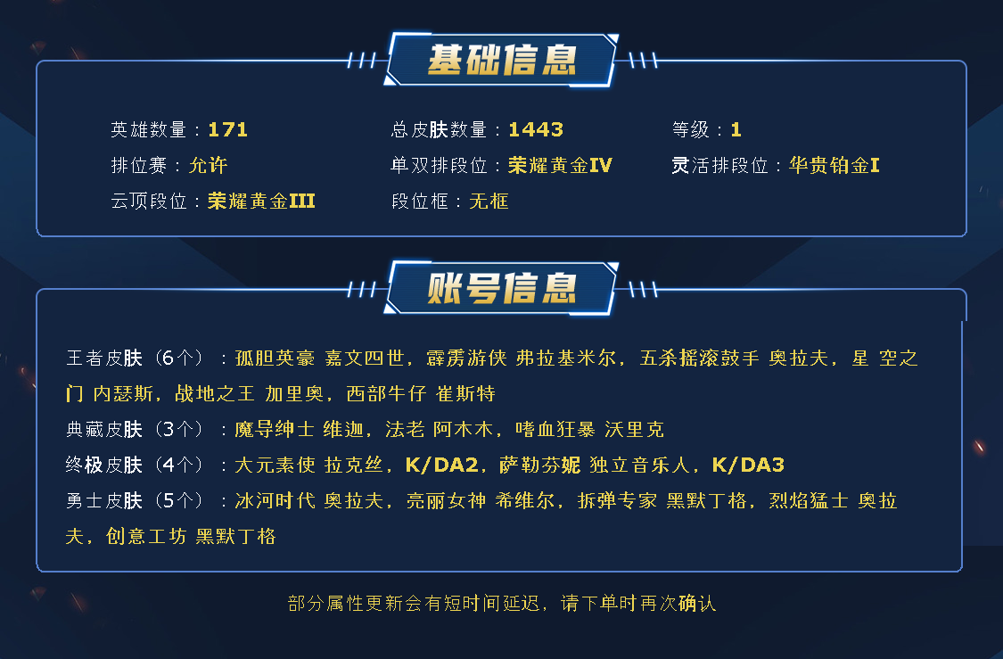 ~~喜欢记得收藏~~可排位~~1351皮全英雄~~租之前尽量查一下游戏ID,确保段位是您需要的,避免浪费您的时间~~请勿挂机逃跑故意送人头,谢谢合作,谢谢~~