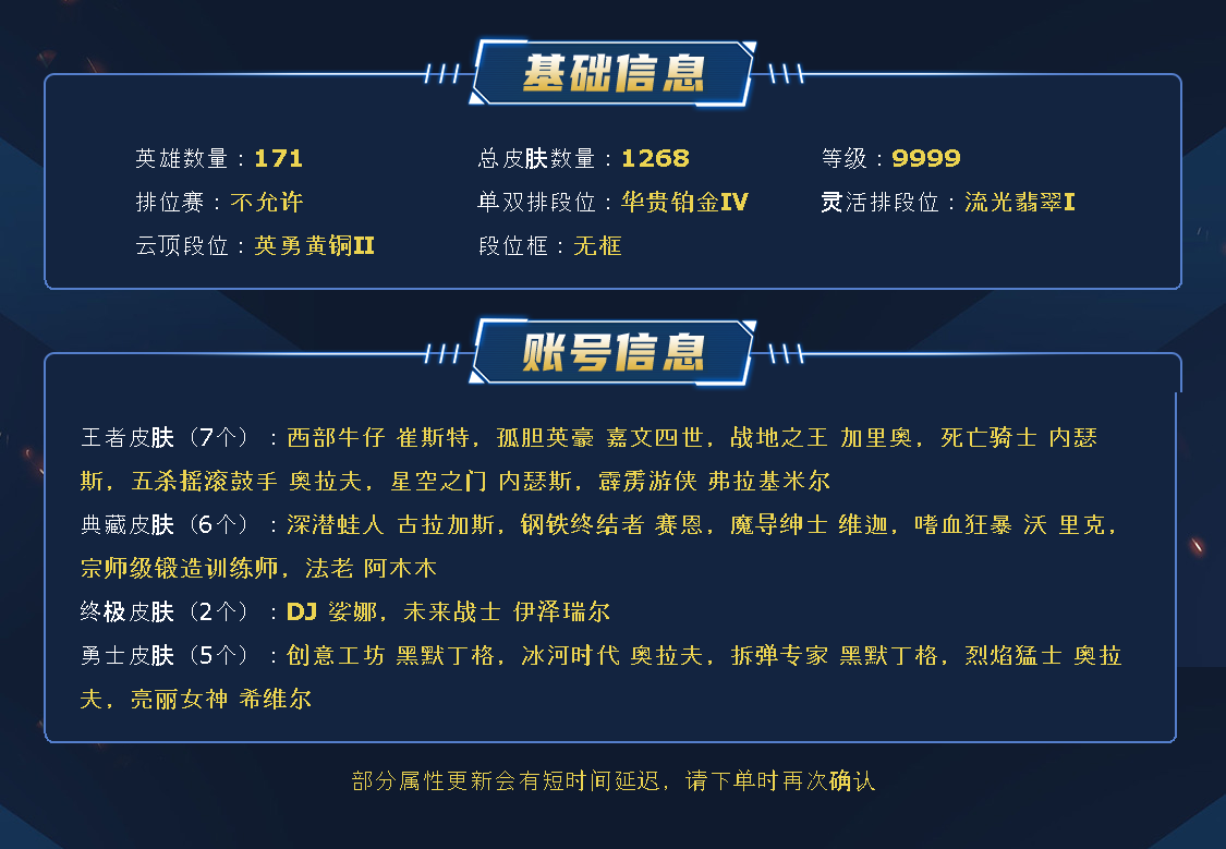 ~~喜欢记得收藏~~可排位~~1212皮全英雄丨70神话/至臻/海克斯丨IG套丨神龙尊者套丨灵魂莲华套丨EDG套丨FPX套丨哥特萝莉丨卧虎藏龙丨勇敢的心丨嫦娥皎月丨银龙裁决丨鼠年瑟提丨觅心剑姬丨情人节洛丨创星璐璐丨御星艾希丨星守风女丨舞会公主丨玉剑无双无极丨电玩女枪卡莎人马~~租之前尽量查一下游戏ID,确保段位是您需要的,避免浪费您的时间~~请勿挂机逃跑故意送人头,谢谢合作,谢谢~~