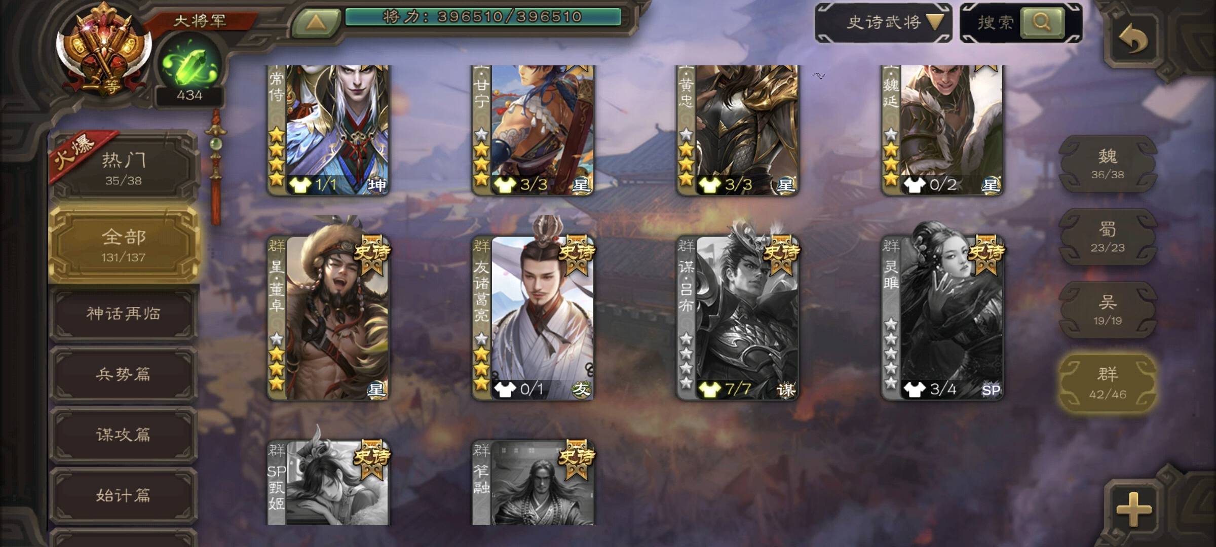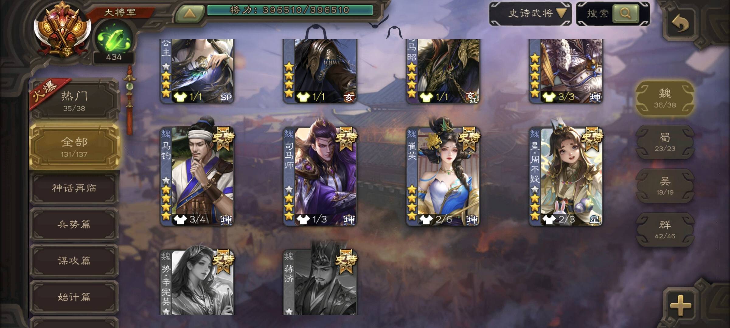 【全平台】 崔芙回廊曹髦【木木有卡有花】131史诗🔥缺几个无用史诗回廊郭女王势国渊势魏延势太史慈友诸葛亮