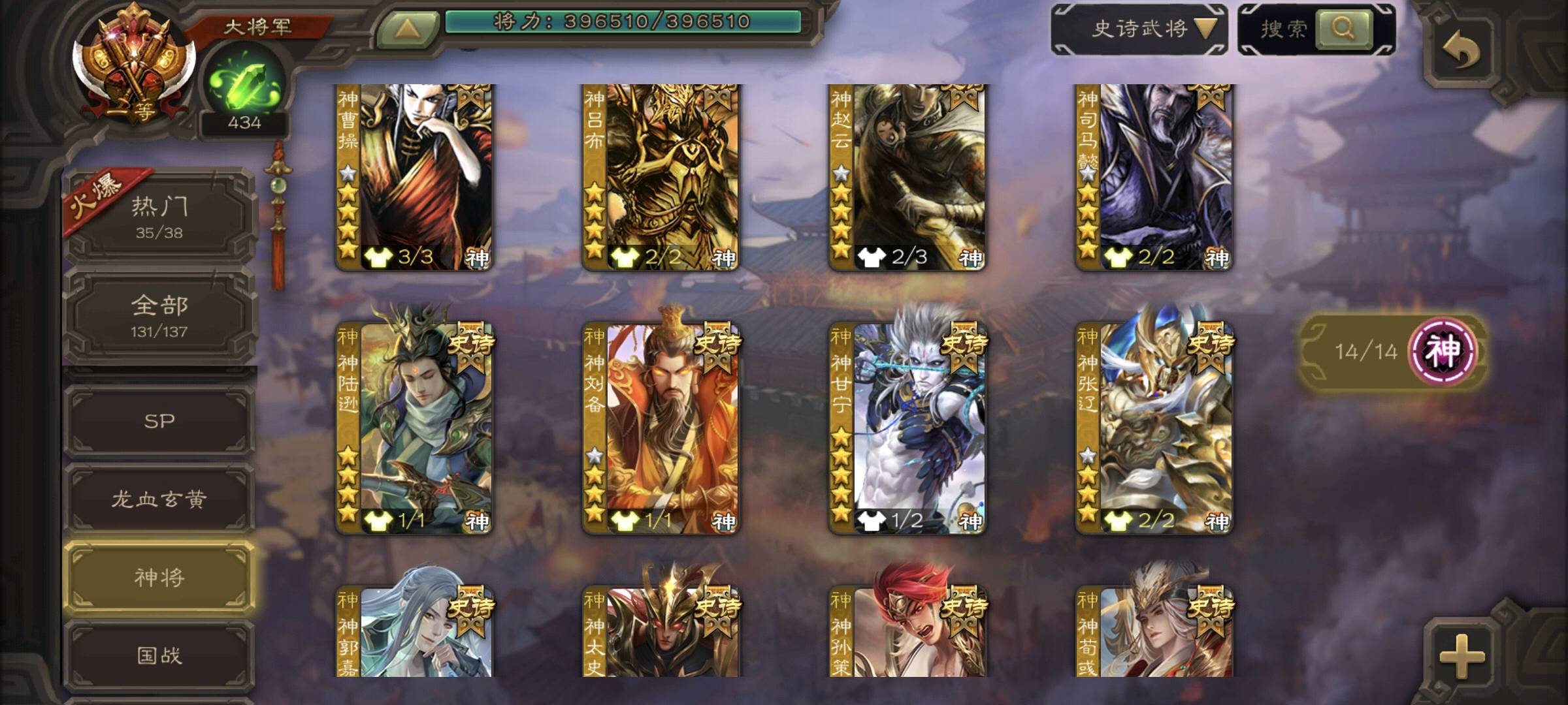 神——神吕布,神赵云,神司马懿,神陆逊,神刘备,神甘宁,神张辽,神太史慈,神荀彧,神曹操,神郭嘉,神孙策,神华佗