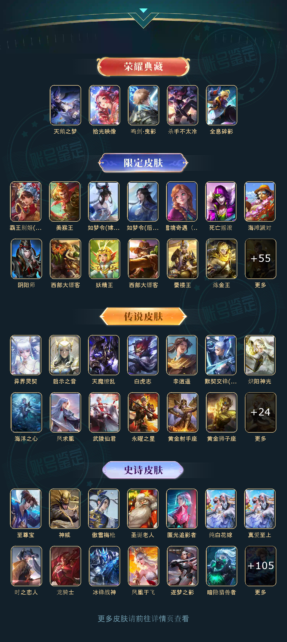 贵族等级V10,英雄数量122,典藏皮肤数5,皮肤数量378,天鹅之梦/杀手不太冷/全息碎影/鸣剑·曳影/李逍遥/武圣/启示之音