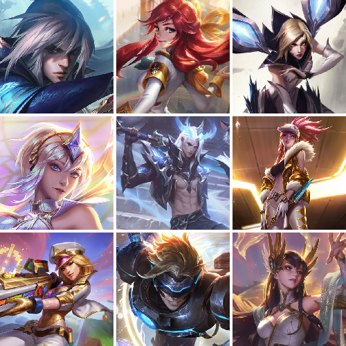 【重要头像】爱意绵绵 觅心游侠卢锡安 觅心之翼奎因 大家伙 萨勒芬妮超级巨星 萨勒芬妮独立音乐人 勇者阿狸炫金 我麦是开的么 魔女丽桑卓炫彩 魔女卡蜜尔炫彩 青花瓷拉克丝 KDA阿卡丽炫彩 KDA萨勒芬妮 星守卡莎炫彩 EDG厄斐琉斯 EDG佛耶戈 EDG格雷福斯 EDG悠米 EDG佐伊 灵魂莲华辛德拉炫彩 青花瓷伊泽瑞尔炫彩 青花瓷伊泽瑞尔 青花瓷千珏 青花瓷丽桑卓炫彩 青花瓷丽桑卓 青花瓷阿木木 烈焰美人薇恩炫彩 烈焰仙子黛安娜 神凰行者霞炫彩 神龙烈焰金克丝炫彩 招财进宝提莫 虎头虎脑崔丝塔娜 虎头虎脑崔丝塔娜炫彩 战斗学院伊泽瑞尔神话炫彩 征服者韦鲁斯炫金 至臻太空律动娜美 至臻海珀利安小队迦娜 至臻星之守护者辛德拉 至臻幻灵战斗猫金克丝 至臻青花瓷拉克丝 至臻神凰行者霞 至臻魅惑女巫莫甘娜 至臻福牛守护者菲奥娜 至臻女帝黛安娜 至臻KDA卡莎 至臻奥术师佐伊 至臻魔女婕拉