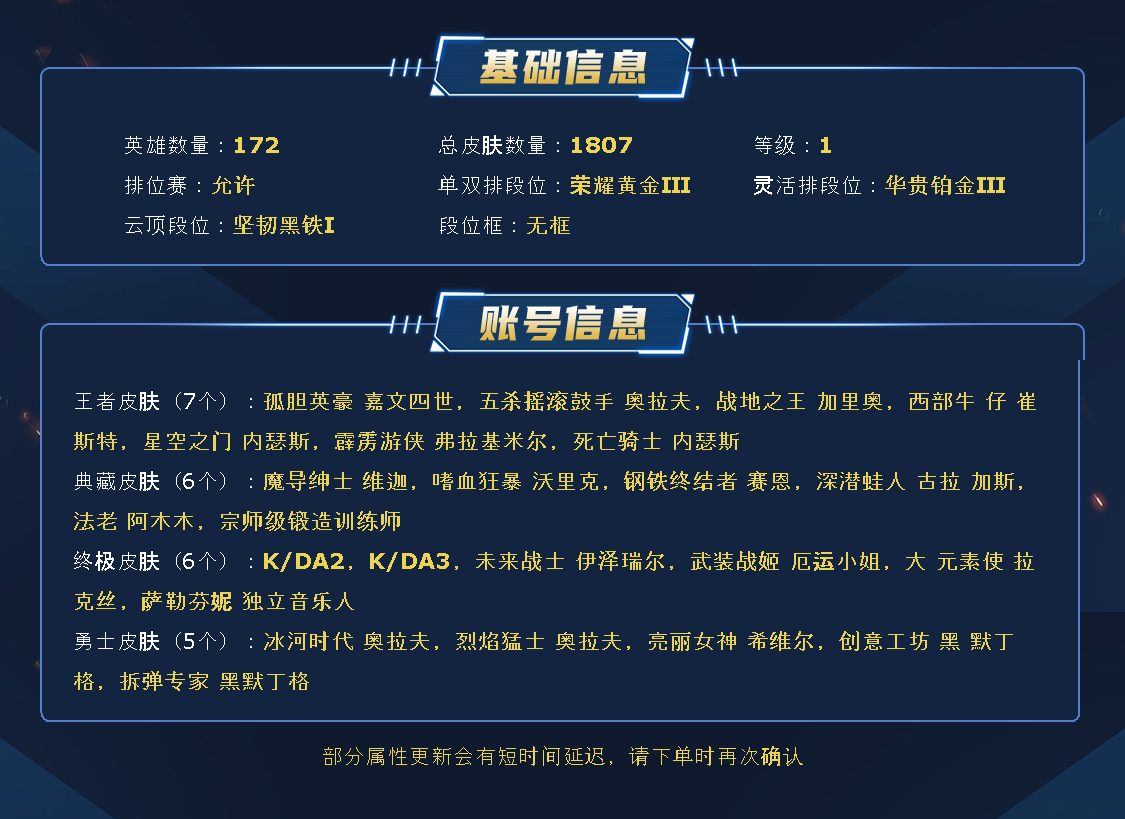 ~~喜欢记得收藏~~可排位~~1800皮全英雄~~租之前尽量查一下游戏ID,确保段位是您需要的,避免浪费您的时间~~请勿挂机逃跑故意送人头,谢谢合作,谢谢~~