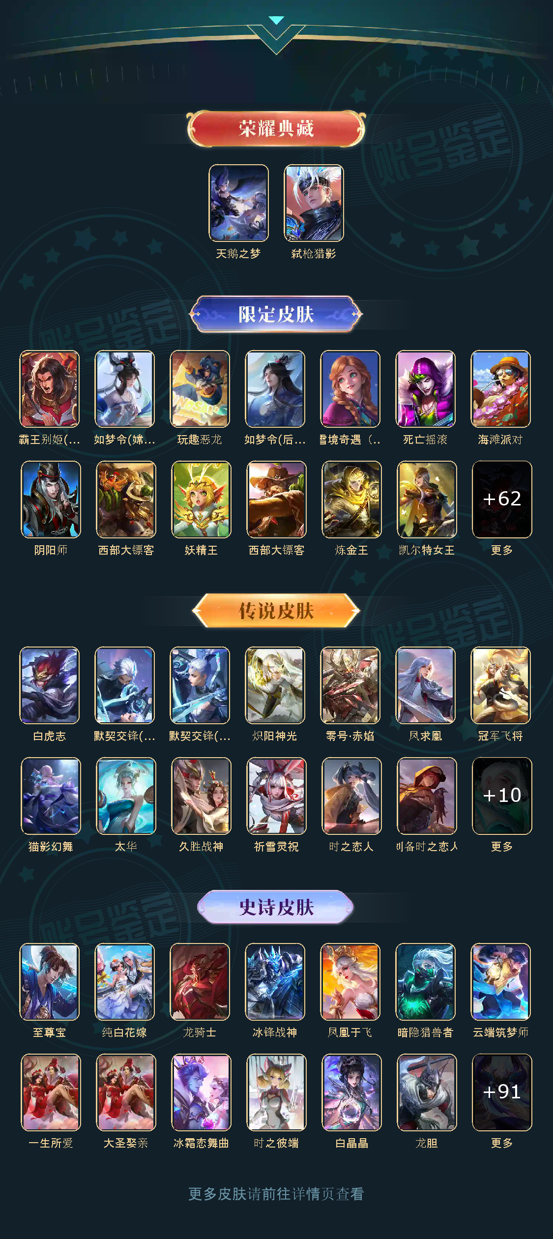 - 典藏皮肤数: 2