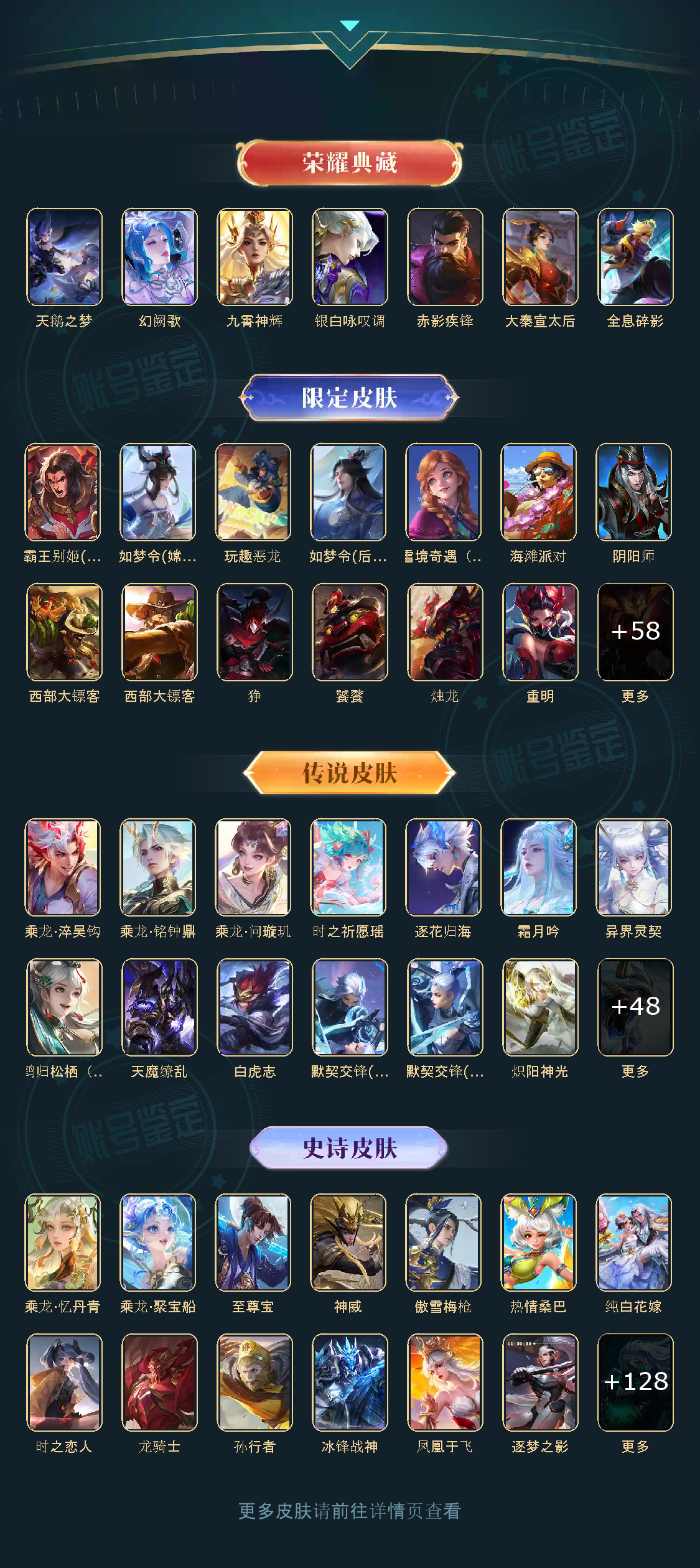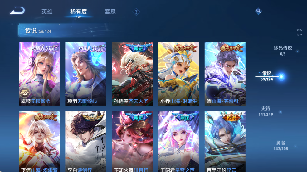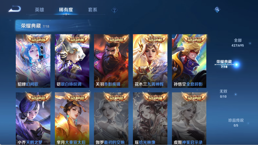 贵族等级V9,英雄数量122,典藏皮肤数7,皮肤数量427,