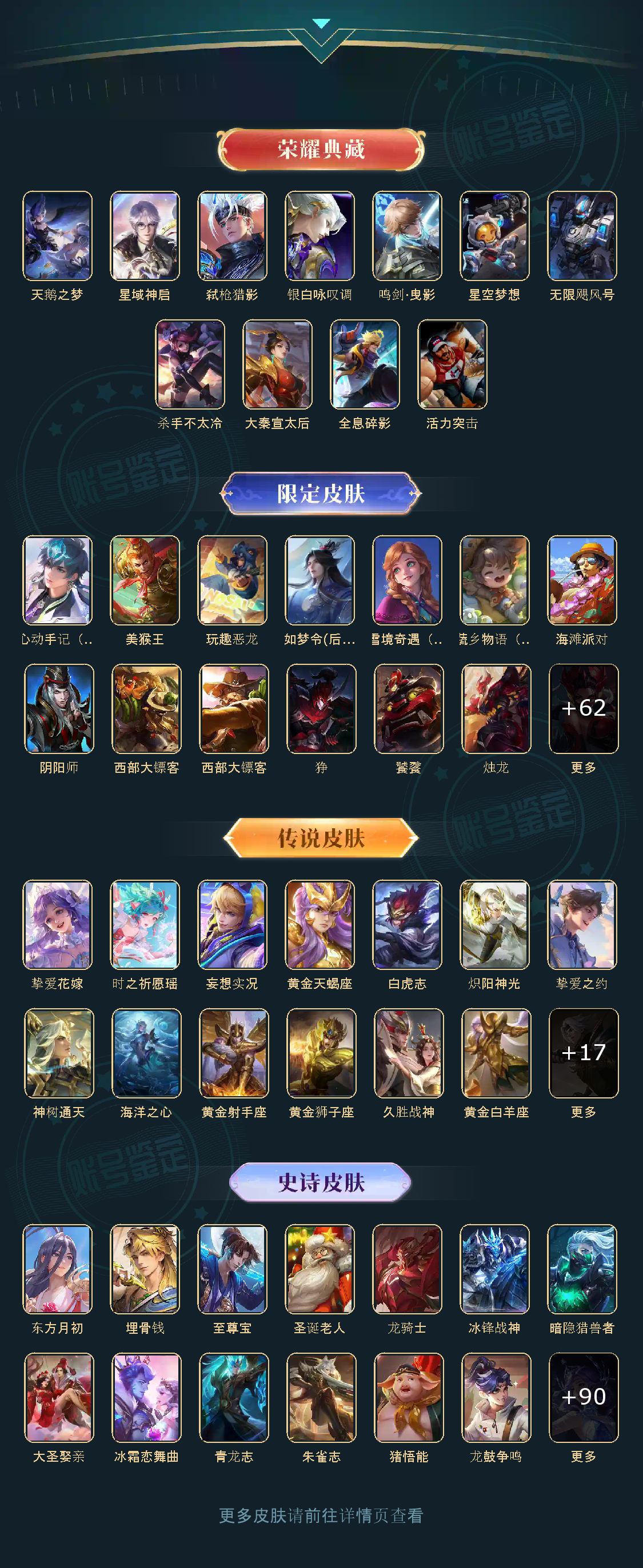 贵族等级V9,英雄数量123,典藏皮肤数10,皮肤数量380,