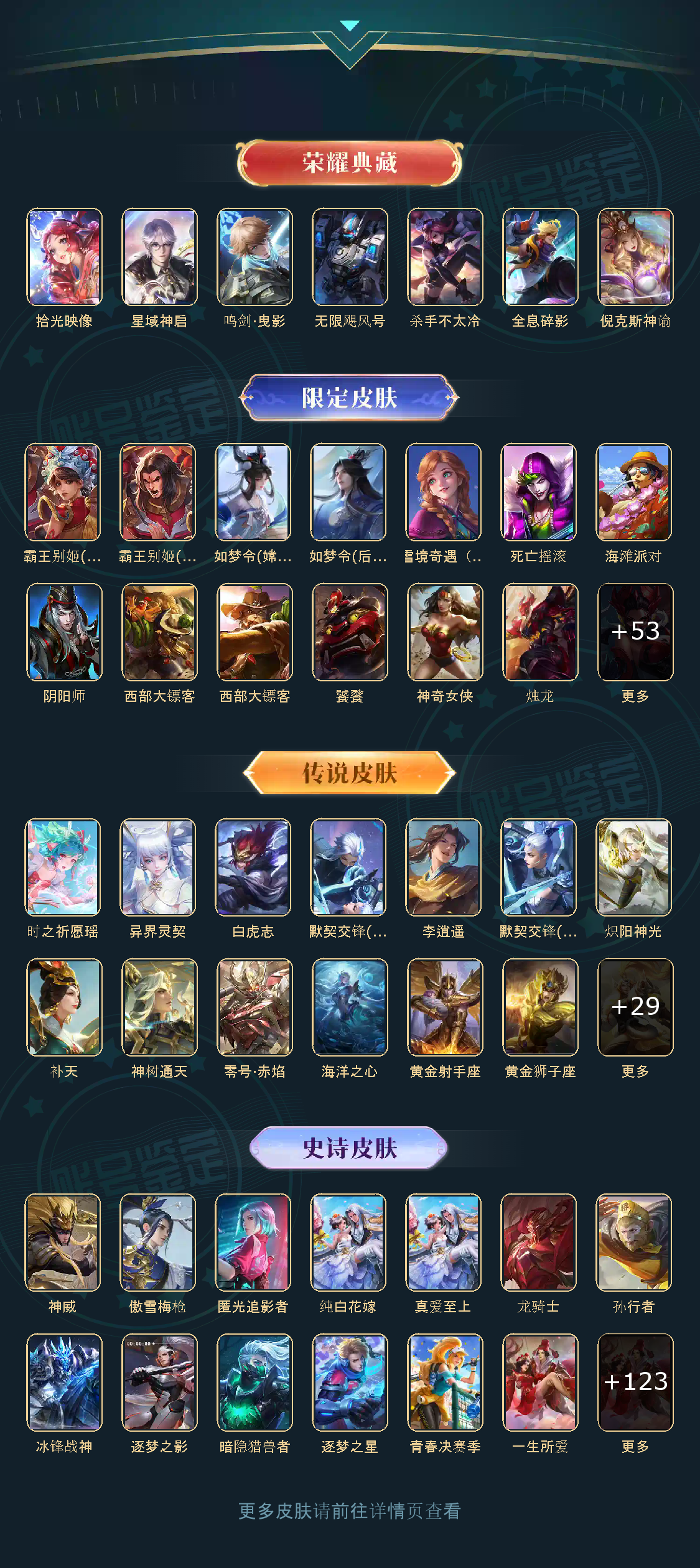 贵族等级V10,英雄数量123,典藏皮肤数7,皮肤数量403,