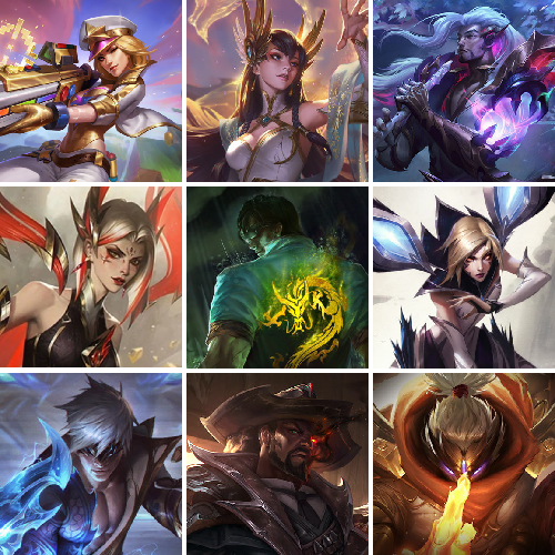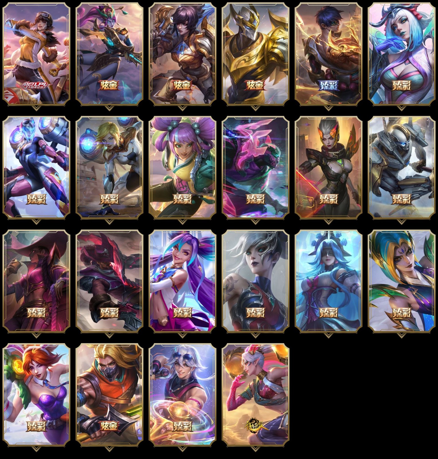 【重要皮肤】幻灵狮心蕾欧娜至臻 至高天凯尔至臻 魔女阿卡丽至臻 DRX亚托克斯至臻 墨之影武者亚索至臻 灵魂莲华易至臻 海珀利安小队X09星环灵风迦娜至臻 星之守护者辛德拉至臻 西部魔影猎天使恶魔泰隆至臻 幻灵战斗猫金克丝至臻 女帝黛安娜至臻 太空律动璐璐至臻 魔女婕拉至臻 魔女乐芙兰至臻 奥术师佐伊至臻 未来战士卢锡安至臻 真实伤害亚索至臻 真实伤害赛娜至臻 灵能特工伊泽瑞尔至臻 福牛守护者菲奥娜至臻 源计划逆流塞拉斯至臻 神龙尊者炎龙瑟提至臻 黑夜使者凯隐至臻 征服者贾克斯至臻 焰执事布兰德至臻 KDA二代卡莎至臻 KDA阿狸至臻 KDA阿狸2022至臻 KDA伊芙琳至臻 电玩女神凯特琳至臻 电玩女神凯特琳2022至臻 魅惑女巫厄运小姐至臻 魅惑女巫厄运小姐2022至臻 源计划正义艾瑞莉娅至臻 玉剑传说武剑仙至臻 玉剑传说武剑仙2022至臻 腥红之月亚托克斯至臻 腥红之月亚托克斯2022至臻 未来战士锤石至臻 未来战士锤石2022至臻 黑夜使者李青至臻 殿堂传奇乐芙兰 灰烬骑士莫德凯撒 灰烬骑士派克 灰烬杀手塞拉斯 海克斯科技瑟庄妮 海克斯科技雷克顿 海克斯科技斯维因 海克斯科技吉格斯 海克斯科技波比 海克斯科技嘉文四世 水晶圣骑艾希 星之守护者塔莉垭 永恒之森奥恩 暗星科加斯 黎明使者卡尔玛 恐惧新星德莱厄斯 零之枪骑赫卡里姆 摄魂使者薇恩 新创战纪希维尔 胜利剑圣易 胜利女神娑娜 胜利之王泰达米尔 胜利巨口克格莫 荣誉使者玛尔扎哈 安妮梦游仙境 电玩勇者锐雯 星之守护者伊泽瑞尔 玉剑传说舞剑仙 神凰行者烈羽焰凰霞 玉剑传说无劫 玉剑传说翼剑仙 龙的传人李青 银龙裁决泰隆 天龙之子斯莫德 神龙烈焰金克丝 春晖神女拉克丝 你看见过我的熊猫吗安妮 北辰之威内瑟斯 美猴王孙悟空 玉净夜叉凯特琳 紫金罗刹莫甘娜 虎痴之拳蔚 金猪烈焰瑟庄妮 烈焰美人薇恩 神龙之翼库奇 王国机神朱雀蕾欧娜 王国机神白虎贾克斯 胜利枪神卢锡安 怦然心动凯特琳 觅心之翼奎因 幽梦玫瑰辛德拉 雪球也能爆炸吉格斯 圣诞老人布隆 狂心冰王图奇 冰雪女神辛德拉 魄罗骑士瑟庄妮 夺命美人卡特琳娜 平安夜女神娑娜 圣诞糖果棒厄运小姐 魅惑女巫乐芙兰 魅惑女巫莫甘娜 魅惑女巫崔丝塔娜 魅惑女巫伊莉丝 大魔法锅布里茨 克烈古拉伯爵 泳池派对凯特琳 泳池派对普朗克 泳池派对塔里克 泳池派对李青 电玩战魂赫卡里姆 穿星魔锋赵信 御星魔矢艾希 制胜金球拉莫斯 EDG厄斐琉斯 iG卡莎 iG乐芙兰 SSG纳尔 SSG嘉文四世 SKTT1扎克 SKTT1辛德拉 SKTT1艾克 SKTT1瑞兹 SKTT1阿兹尔 SKTT1雷克顿 SSW泰隆 SSW图奇 SSW辛吉德 SKTT1劫 暗杀星蒙多 暗杀星努努和威朗普 暗杀星慎 Fnatic迦娜 Fnatic古拉加斯 Fnatic嘉文四世 冰雪节玛尔扎哈 冰雪节辛吉德 防暴士兵辛吉德 防暴天使凯尔 钢铁之翼艾尼维亚 冠军典狱长锤石 冠军之矛卡莉丝塔 冠军之刃锐雯2016 冠军之血希瓦娜 冠军之隐劫 春晖海神卡兹克 鬼影森森茂凯 鬼影重重魔腾 胡桃夹子萨科 惊悚派对费德提克 警用试作体K9内瑟斯 密林猎手提莫 南瓜头费德提克 圣诞精灵崔丝塔娜 圣诞开心鬼提莫 圣诞狂欢基兰 圣诞老人古拉加斯 圣诞玩偶波比 圣诞驯鹿克格莫 糖果使徒费德提克 外星装甲库奇 无头骑士赫卡里姆 喜庆之树茂凯 邪恶圣诞老人维迦 雪球也能爆炸吉格斯 野兽猎人德莱文 野兽猎人瑟庄妮 野兽猎人泰达米尔 英勇玩具兵普朗克 勇者阿狸 勇者奈德丽 征服者韦鲁斯 暗影沃里克 魅惑女巫辛德拉 阿木木主人不要我了 波比的巧克力工坊 都铎王朝图奇 十五周年纪念希维尔 十周年纪念安妮 源代码乐芙兰 神凰行者瑞羽圣凰艾尼维亚 胜利凤凰艾尼维亚 绝息圣堂洛