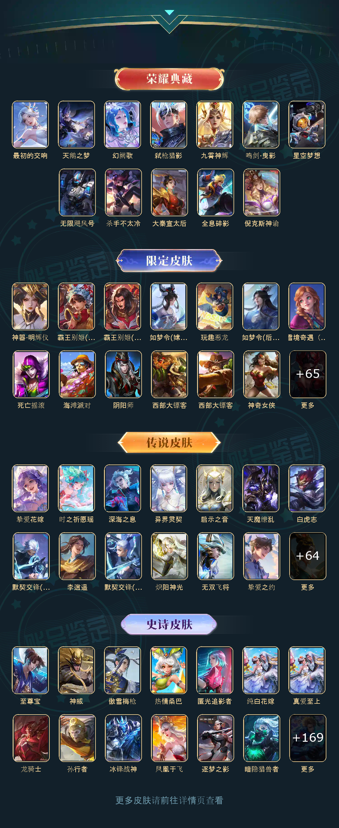 贵族等级V10,英雄数量123,典藏皮肤数11,皮肤数量522,