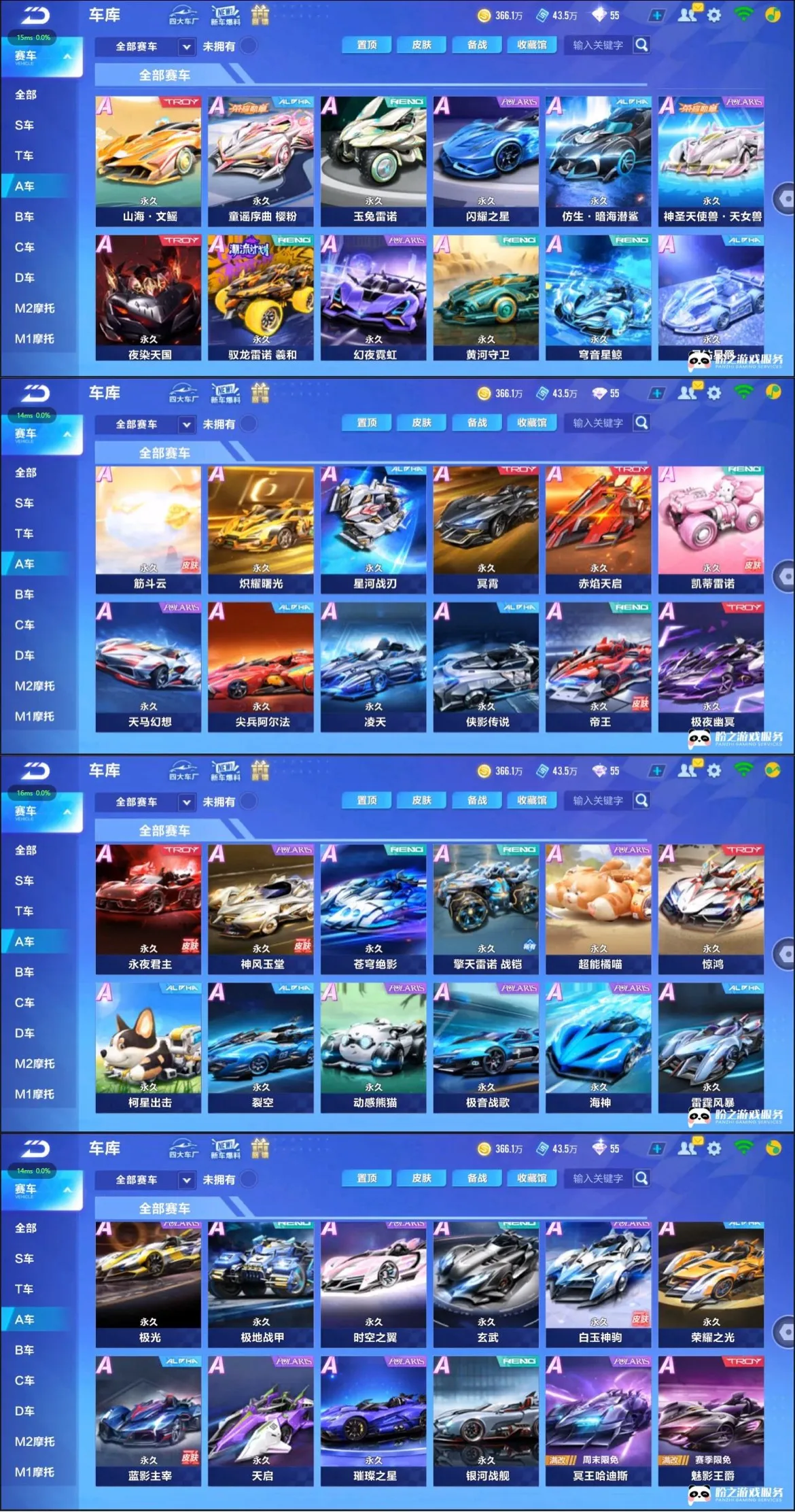 【A车】倾慕/铃语星橇/平衡童趣/星钻雷诺/花庭颂宴/皎月灵波/白玉神驹·金辉/狂野购物/双叶幼稚园校车/破晓者·荣耀/阿斯顿马丁/霆光 RSG/