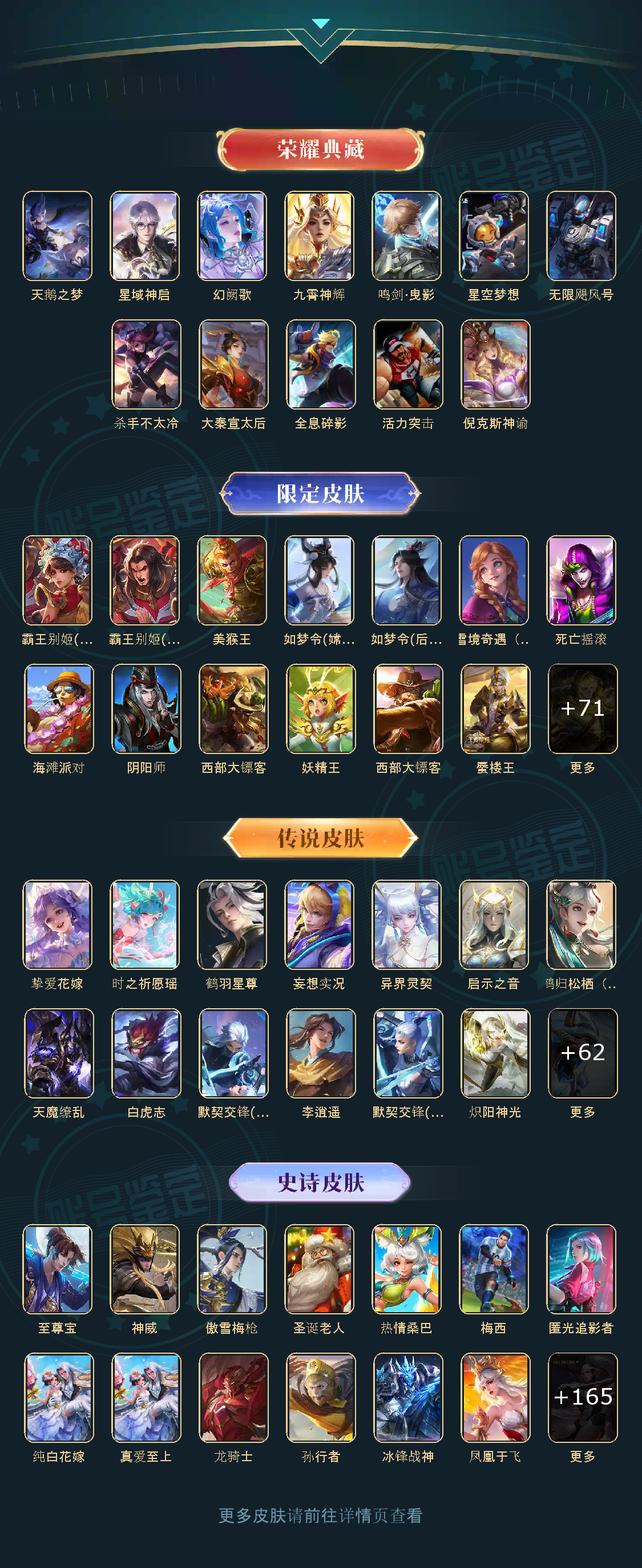 贵族等级V10,英雄数量124,典藏皮肤数11,皮肤数量524,天鹅之梦/星空梦想/无限飓风号/全息碎影/活力突击/倪克斯神谕/鸣剑·曳影/星域神启
