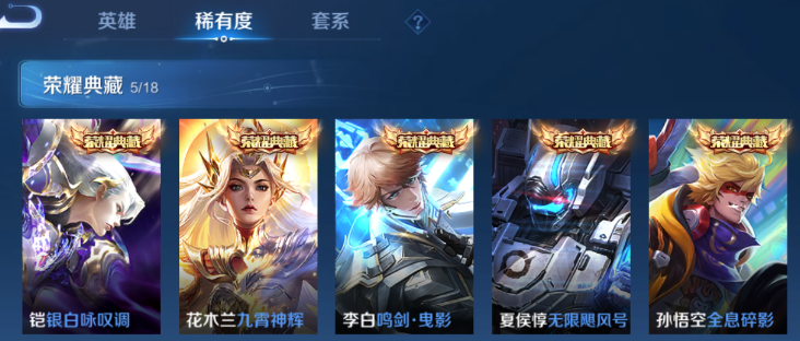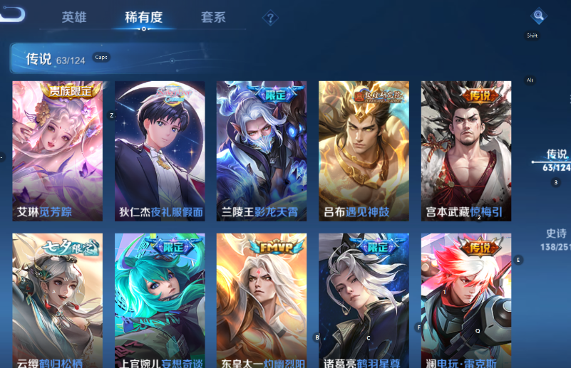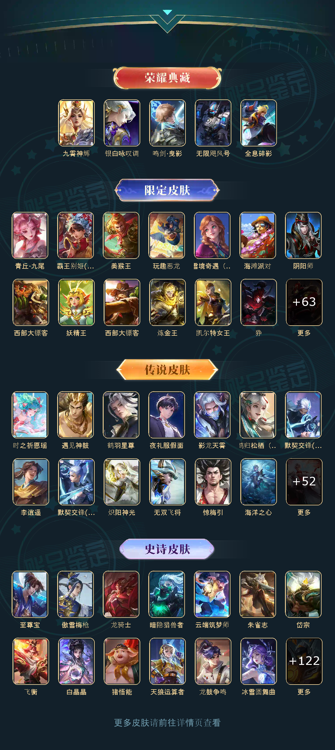 贵族等级V10,英雄数量125,典藏皮肤数5,皮肤数量426,全息碎影/鸣剑·曳影