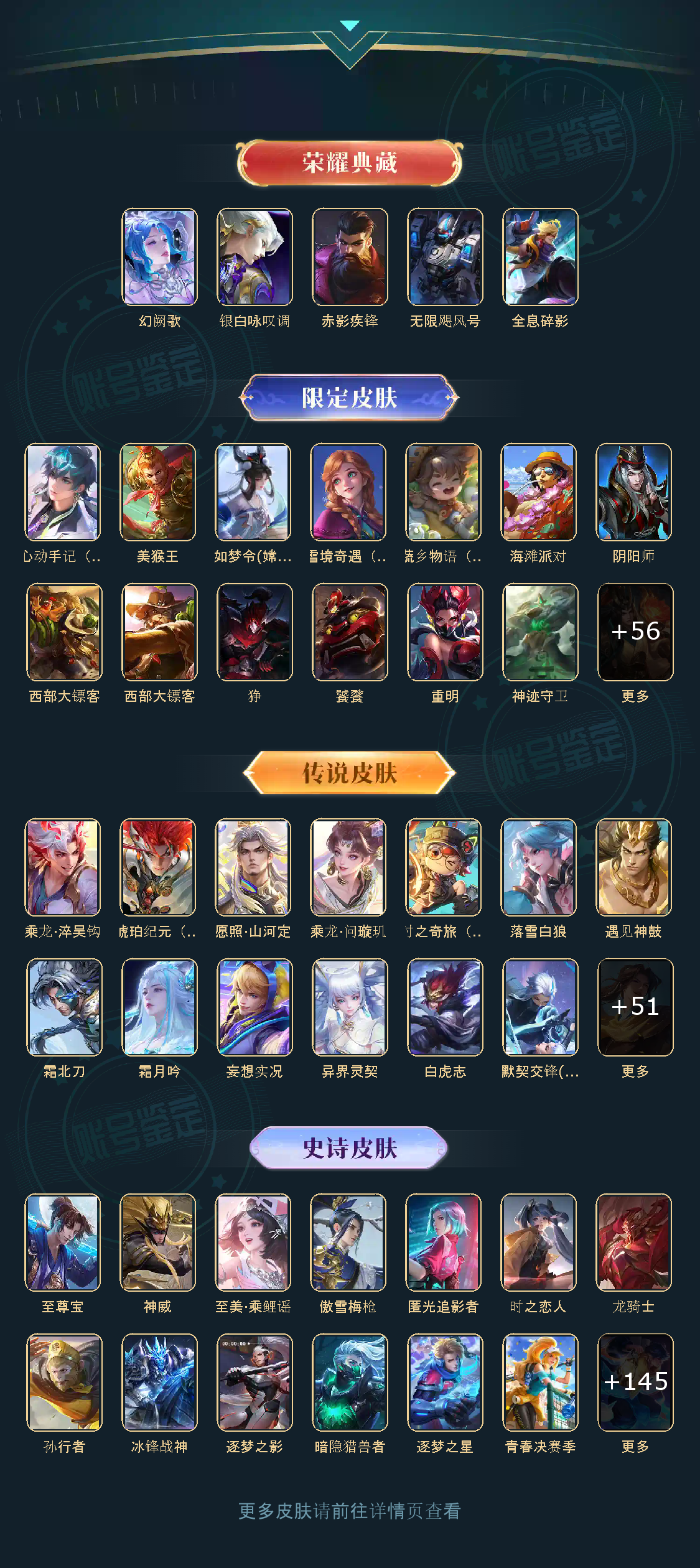 贵族等级V10,英雄数量122,典藏皮肤数5,皮肤数量464,无限飓风号/全息碎影