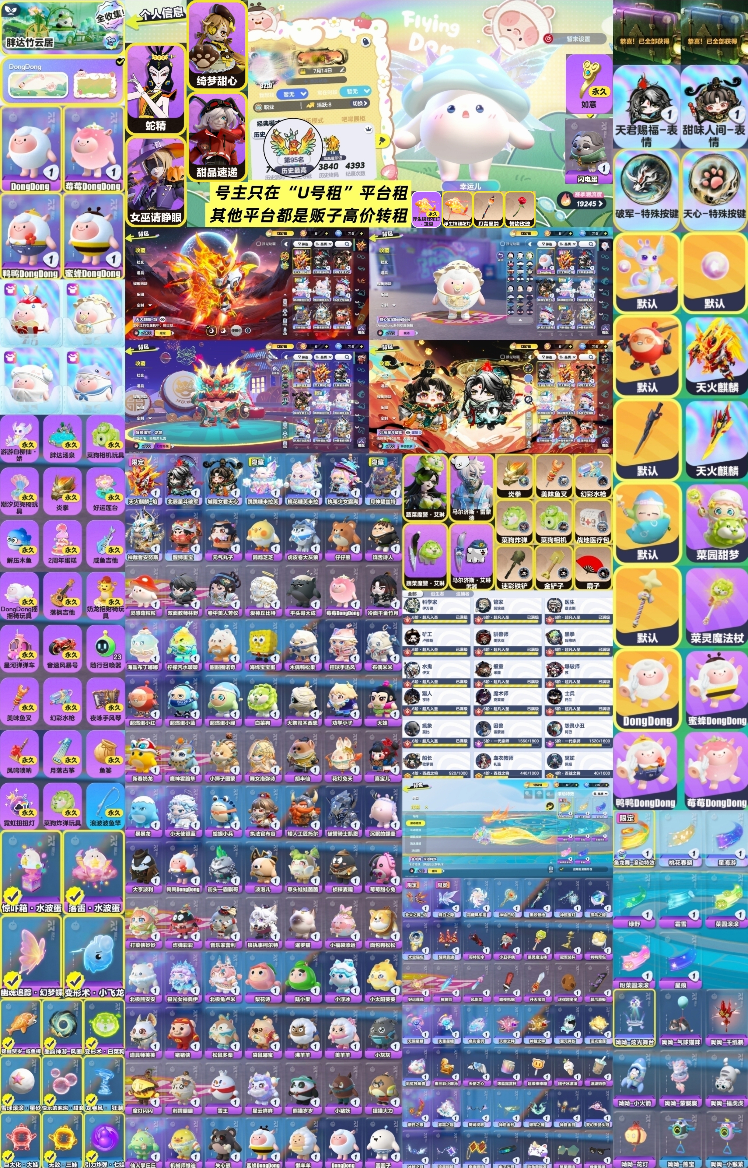 【安卓】 秒登💎天火麒麟/蛇车💎四小羊衣橱💎惊魂夜高练度全武器💎龙焰蛋宝/天心破军/灵感菇/胖达竹云居