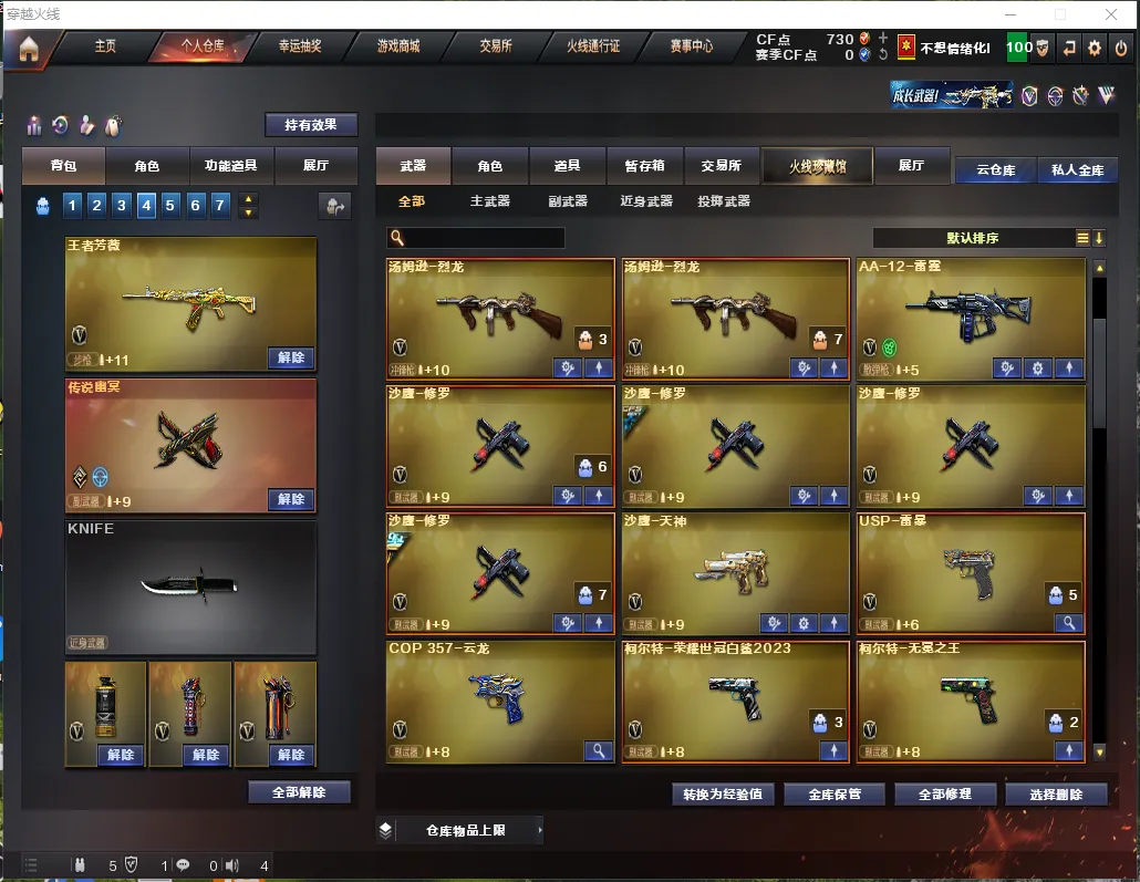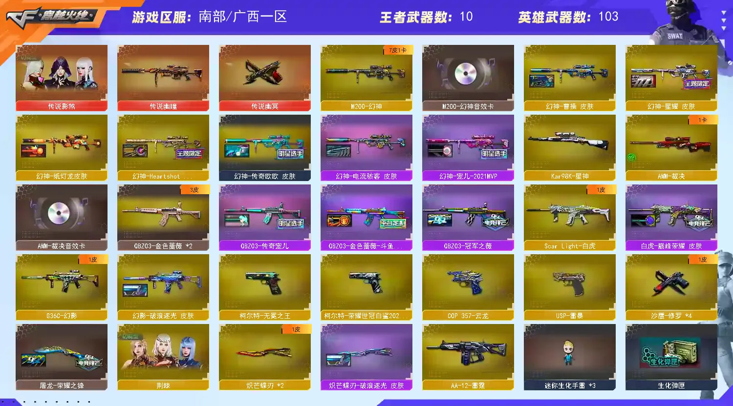 【皮肤】幻神-传奇欧欧皮肤/幻神-宠儿皮肤/幻神-Heartshot皮肤/幻神-星耀皮肤/幻神-曹操皮肤/幻神-纸灯笼皮肤/幻神-电流骇客皮肤/炽芒蝶刃-破浪逐光皮肤/蔷薇qbz-传奇宠儿皮肤/蔷薇qbz-斗鱼平台皮肤/蔷薇qbz-冠军之薇皮肤/G36C幻影-破浪逐光皮肤/白虎-巅峰荣耀皮肤/白虎-粉兔皮肤/雷神-宠儿皮肤/雷神-刘备皮肤/雷神-荣耀之魄皮肤/天罚-孙权皮肤/黑鲨-电流骇客皮肤/黑骑士-CFS2021皮肤/毁灭-CFPLS16冠军皮肤/毁灭-荣耀之怒皮肤/毁灭-星空皮肤/火麒麟-轻羽皮肤/炼狱-星空皮肤/屠龙-荣耀之峰皮肤/修罗-冠军之魂皮肤/