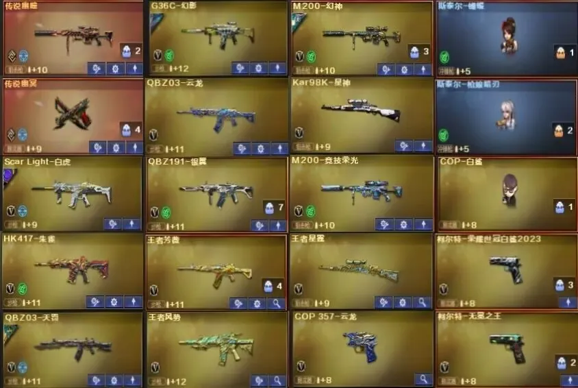【主武器】传说幽瞳/M200-幻神/M200-幻神竞技荣光/G36c幻影/白虎/QBZ191银翼/王者星神觉醒/qbz云龙/qbz天罚/斯太尔蝴蝶/斯太尔枪娘/MK5-喷火龙/⑥烈龙/⑥盘龙/海神加特林/②雷神/黑骑士/火麒麟/超新星热带奇洋/黑鲨/无影/黑武士/②蔷薇qbz/王者风势觉醒/王者芳薇觉醒/毁灭/王者凤鸣觉醒/蔷薇大炮/aa12雷霆/金色蔷薇-空/天启悦智/炫金雷神/炫金骑士/炫金无影/裁决雪莉杨/神圣爆裂者3