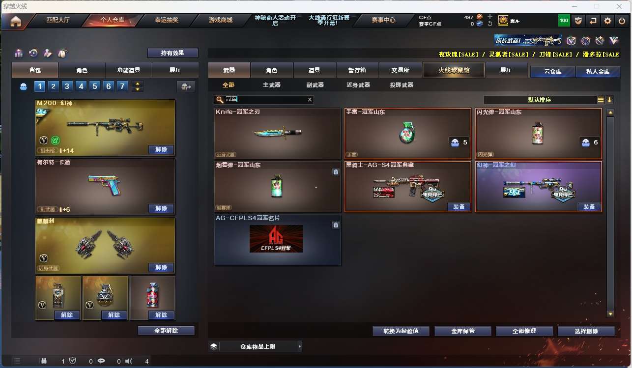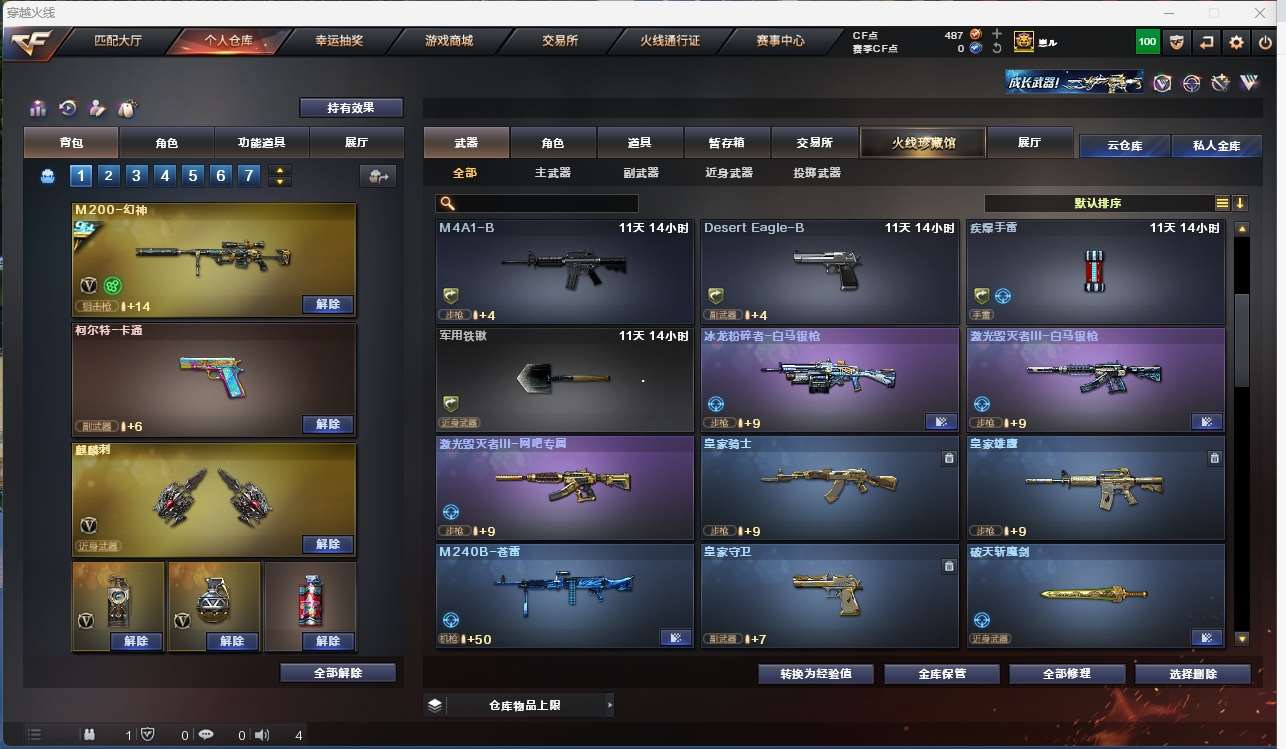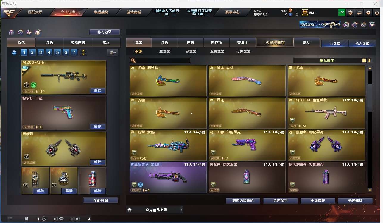 幻神+冠军之幻+冠军之刃】【98k星神】【火麒麟】【雷神】【黑骑士+战神马超】【毁灭】 【武器:天龙 】 【4手呛:修罗*3 天神】 【刀具:麒麟刺 屠龙动感闪耀】 【雷套:】 【小人呛:金色蔷薇空】 【音效卡: 】 【角色:零 鹰