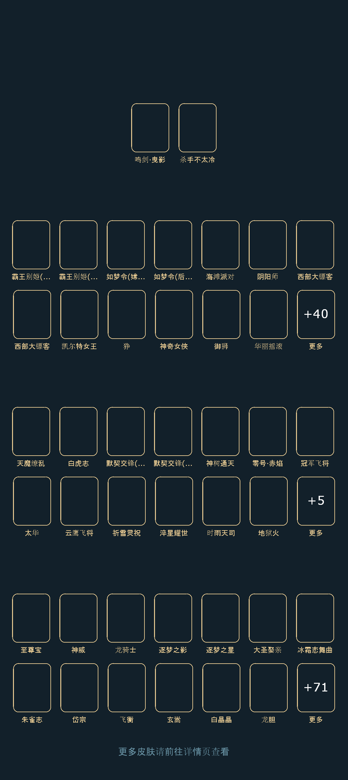 天魔缭乱/至尊宝/杀手不太冷/逐梦之影/神奇女侠/大圣娶亲/冰霜恋舞曲/白虎志/朱雀志/太华/飞衡/梁祝/鸣剑·曳影/龙胆/武圣/奔雷神使/神威/淬星耀世/时雨天司