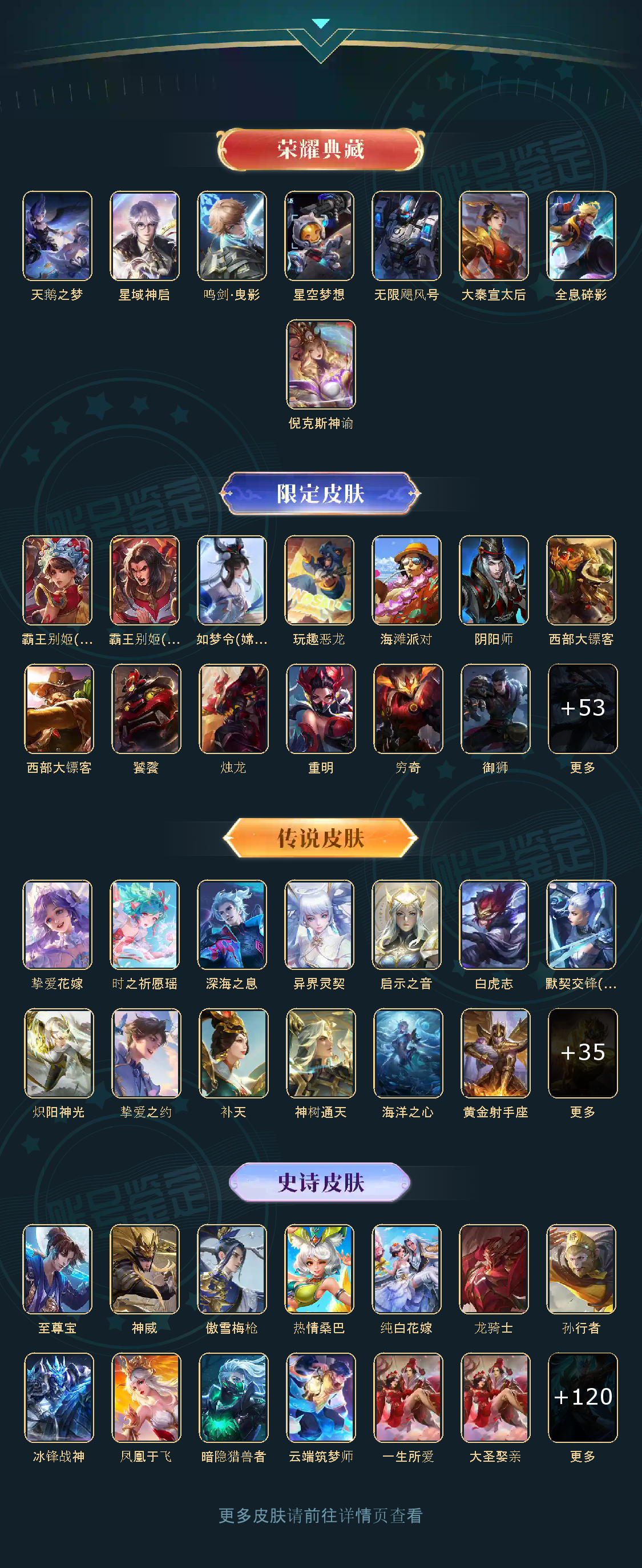 贵族等级V10,英雄数量138,典藏皮肤数8,皮肤数量404,