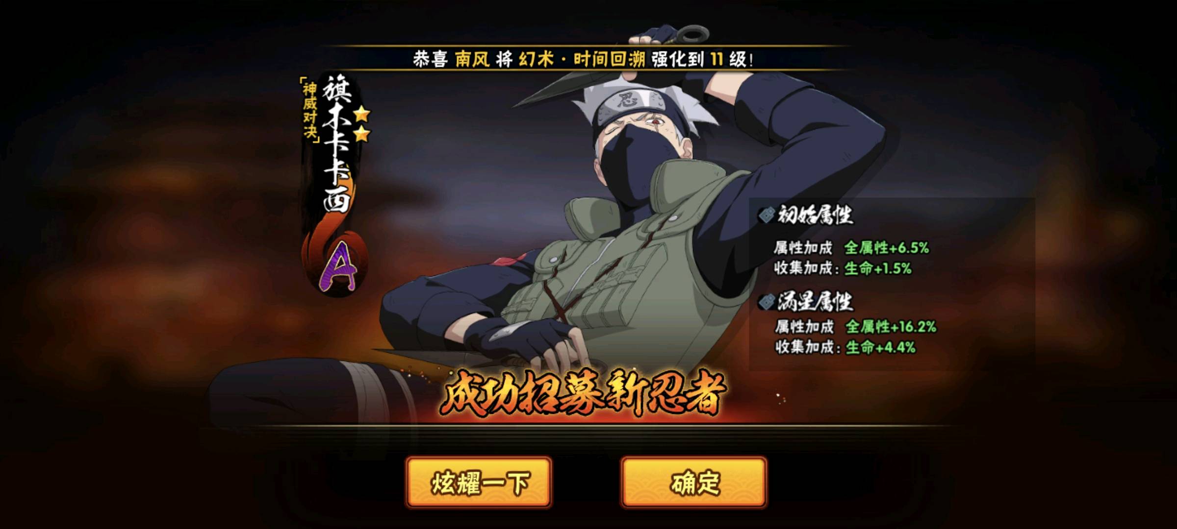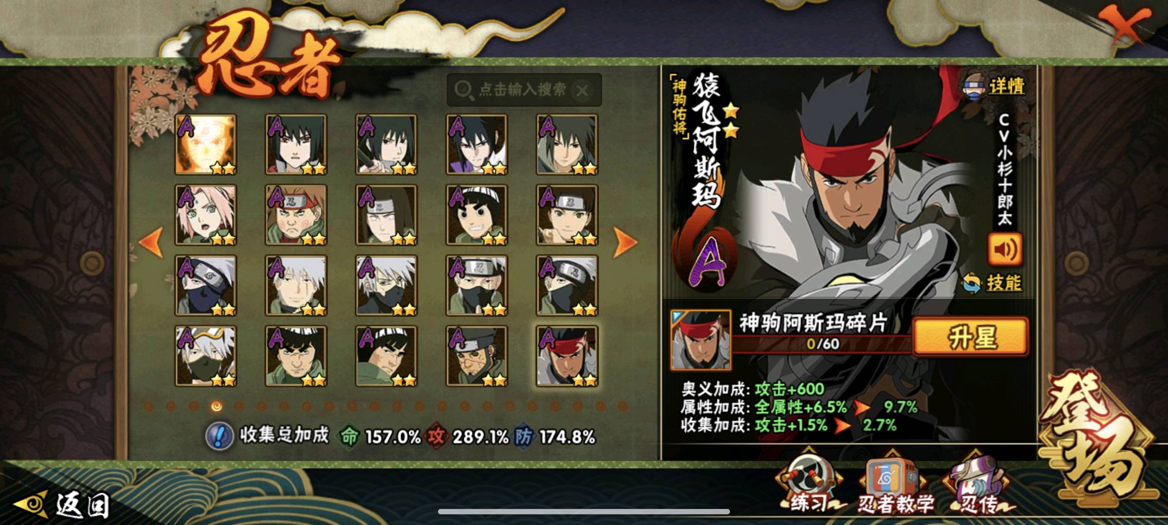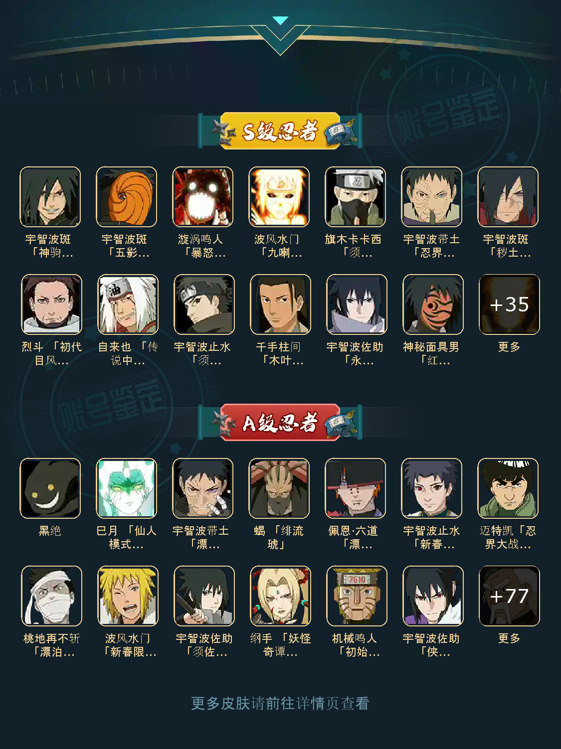 48S 87A 367忍者 高招自来 宇智波带土「暴怒」/干柿鬼鲛「鲛肌融合」/宇智波佐助「疾风传咒印」/干柿鬼鲛「狂野鲛鲨」/迈特凯「忍界大战」/宇智波带土「忍界大战」/宇智波斑「木叶创立」/佩恩·天道「超」