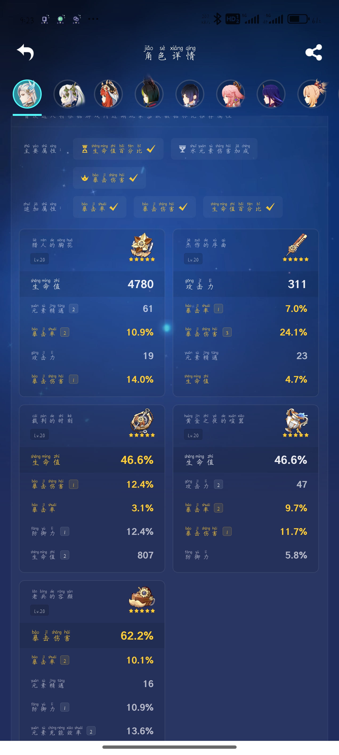 一命草神,一加一雷神,三命莫娜,一加一尼露加,三命提纳里,四命迪卢克,0命龙王,0命钟离,0命迪希雅,0加一宵宫,0命万叶,其他看图基本介绍,
