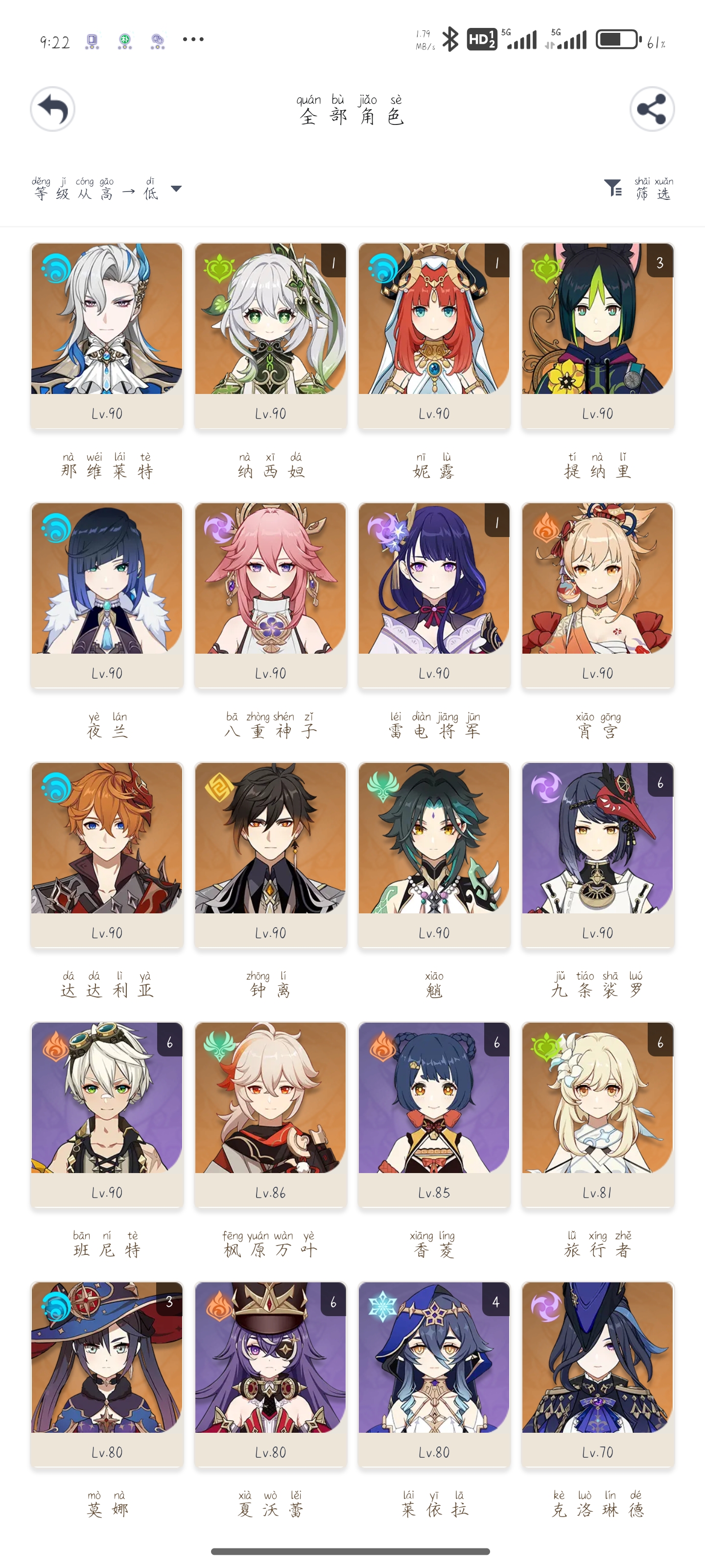 【全平台】 官服账号,一命草神,一加一雷神,三命莫娜,一加一尼露加,三命提纳里,四命迪卢克,0命龙王,0命钟离,