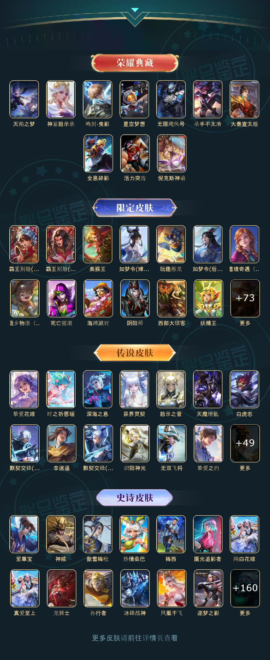 贵族等级V10,英雄数量125,典藏皮肤数10,皮肤数量507,