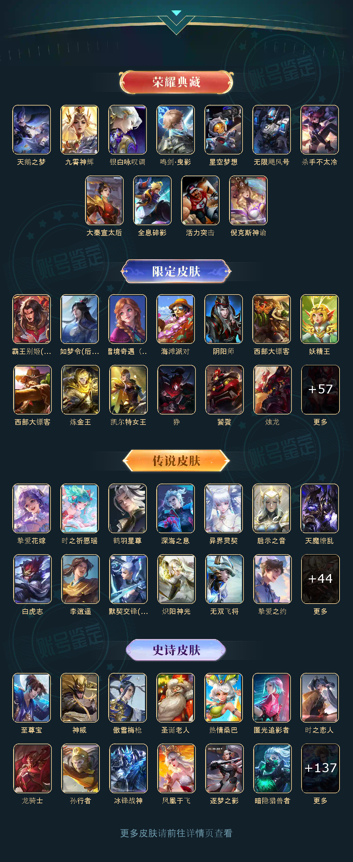 贵族等级V10,英雄数量124,典藏皮肤数11,皮肤数量447,