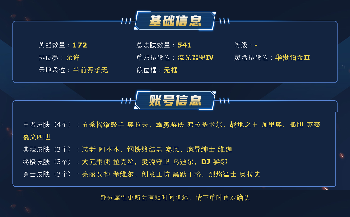 联盟一区丨祖安丨全英雄丨540总皮丨可排位丨下棋号丨大元素使丨灵魂守卫丨DJ娑娜丨请勿挂机谢谢
