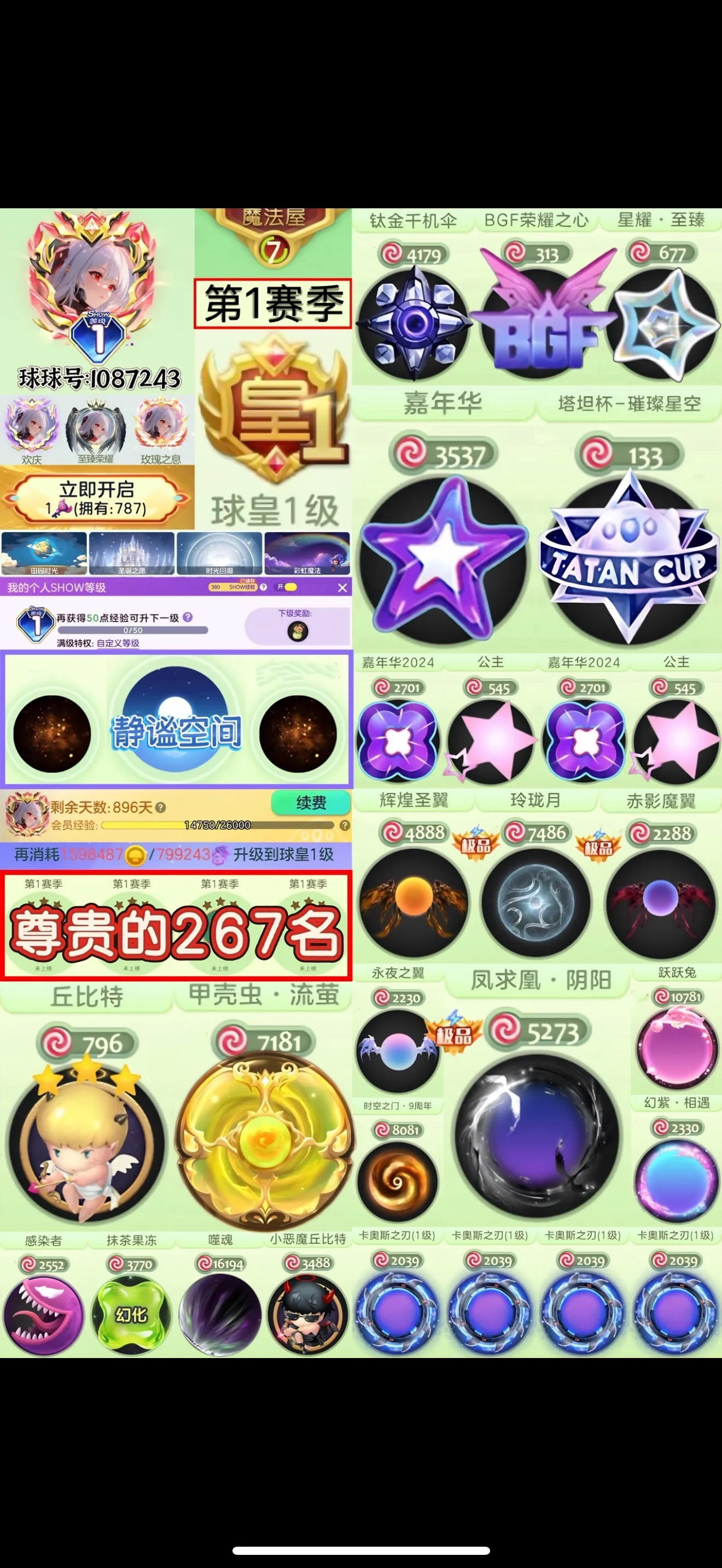 【全平台】 满赛季267名❤️一秀紫名 【嘉年华星空塔坦杯】❤️bgf【静谧空间】甲壳虫丘比特 精品配置