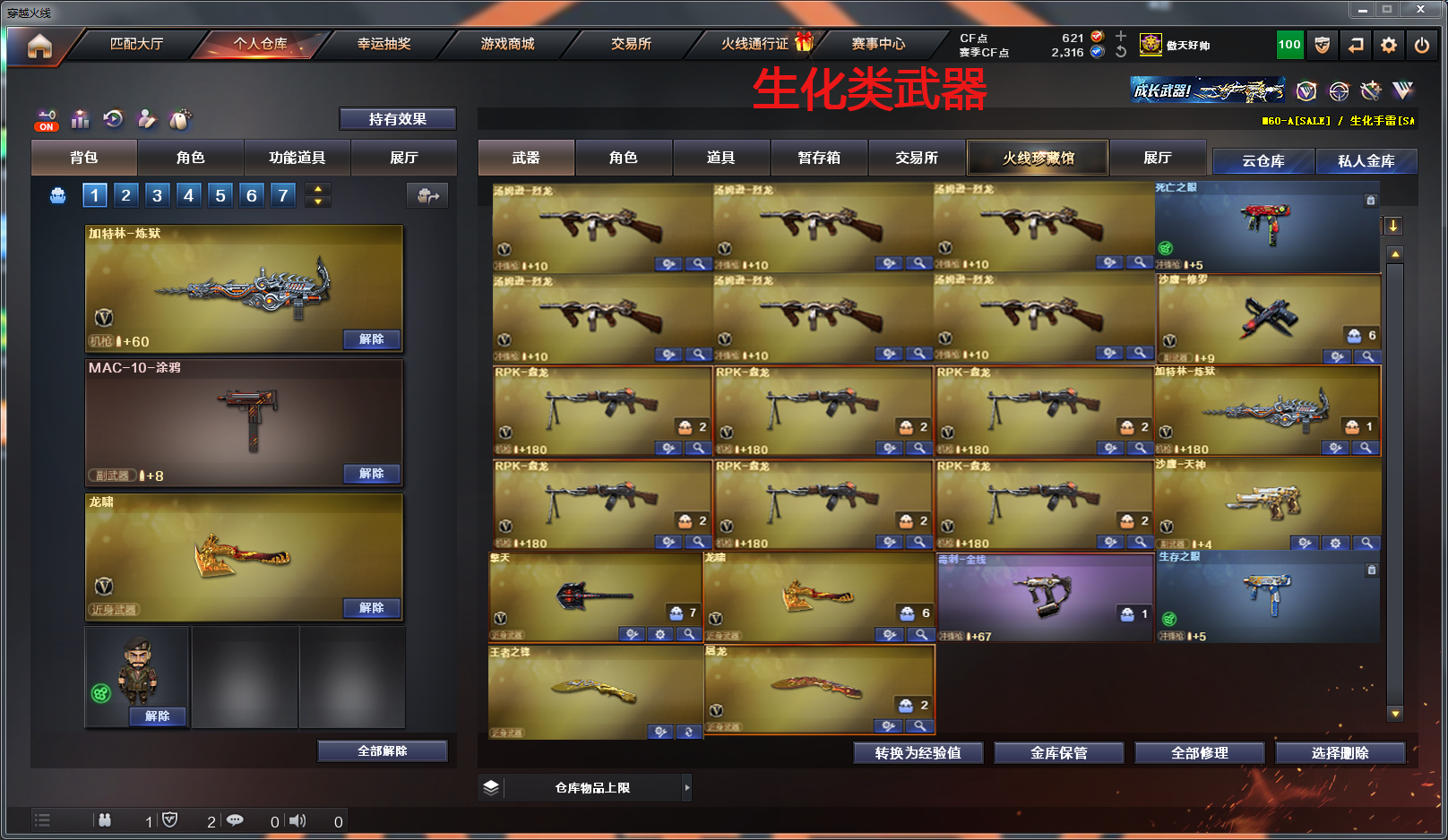 【允许排位】生化号|炼狱|6烈龙|6盘龙|6副|生化5技能|生化背包|全弹夹|勇往直前包|
