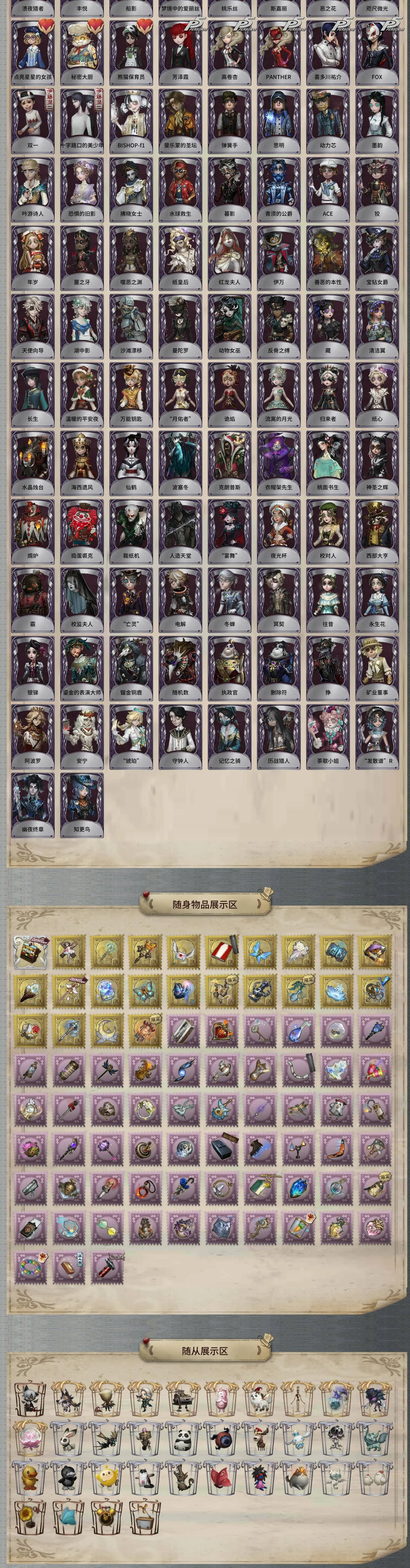 【挂件】最高品质随机/不灭之火/Vote盒子/致命的邀请函/完美人偶/太宰的爱书/宽恕/萤之羽/玫瑰之下/免美的魔法棒/最后的故事/遗忘之花/书中蝶/发条蝴喋/梦魇结晶/调制架/茅龙书/毁誉之印/折柳/雪莲/南谢/无跟/纯银子弹/束缚之心/心形泡泡圈/蝶醉/密码筒/凝露/毒蛇手杖/极乐熔毁/巨人风车/机关囚笼/子夜来使/茶话时间/生日拉炮/永恒之沙/协律/虎尾/铁轨信号灯/逝去的纪念/皮纳塔/海岸花环/沙漠精灵/白泽玉/糖果鬼/海之低语/未奏的乐章/指挥/秘密/一步之遥/遥控器/欢呼/电掣/案件模拟/火火火/结冰的齿轮/回旋镖/漂浮/纠缠/笔墨藏锋/玫瑰手杖(蓝)/凝固的声音/蘑詰圈/爆燃/福尔摩斯冒险史//酩酊/18日征帆/记忆囚笼/扑克牌/EONAN/'小黑/海神的祝福/警徽/睡毯披肩/手枪/笼中鸟/电子耳/水盘/半身像/愿望气球/转化/百目鬼静的弓/名片盒/破损鸟笼/Buzz玩偶/卷发棒/美乐蒂的眼镜/1公/星轨/F0X的日本刀/SKULL的枪/PANTHER的鞭子/