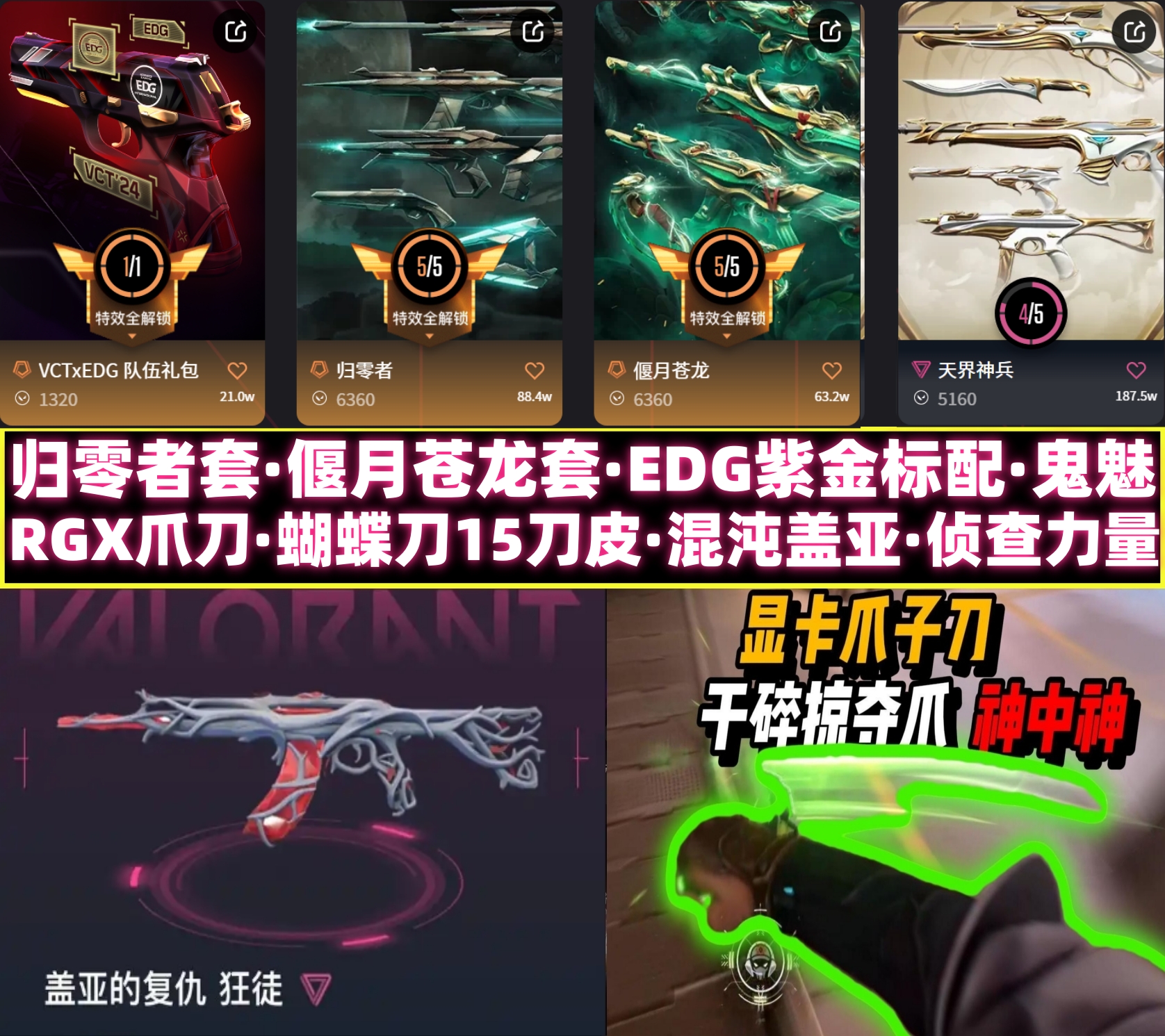 【当前段位:黄金II】极品刀皮15枪皮111⚡RGX爪刀⚡盖亚混沌归零侦查力量⚡天界鬼魅EDG紫金标配起点正义⚡偃月苍龙套