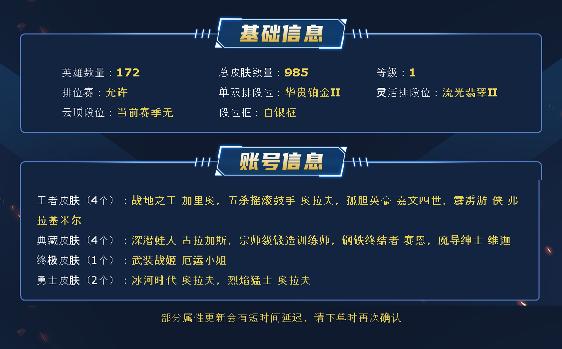 【全英雄可排位580原皮肤】至臻希维尔、至臻剑圣、至臻潘森、水晶泰坦诺提勒斯、水晶巫灵泽拉斯、灰烬骑士莫德凯撒、海克斯鳄鱼、海克斯皇子、海克斯阿木木、兔年盖伦、虎年瑟提、牛年诺手、牛年皇子、灵能特工易、鼠年瑟提、鼠年盖伦、鼠年日女、猪年薇恩、虎痴之拳、狗年狼人、司马懿、花木兰、龙年大嘴、勇敢的心诺手、张辽、殿堂传奇妖姬、灵魂莲华瑟提、光明哨兵男枪、光明哨兵薇恩、战斗学院女警、源计划铁男、神龙尊者圣龙李青、灵魂莲华锤石、情人节风女、泳池女警、征服者韦鲁斯、暗星女王皎月、暗星女王丽桑卓、暗星约里克、战斗公主安妮、女帝剑姬、西部魔影塔姆、心之钢瑟提、星之守护者萨勒芬妮、黑夜使者蛮王、黑夜使者凯隐、神龙尊者锤石、神龙尊者卡尔玛、焰执事火男、源计划赛娜、源计划塞拉斯、源计划韦鲁斯、秩序之舌塔姆、战斗学院盖伦、破败军团女枪、幻灵战斗蝠薇恩、光明哨兵派克、太空律动拉克丝、女帝皎月、女帝芮尔、咖啡甜心安妮、咖啡甜心吸血鬼、奥德赛剑魔、山海绘卷烬、神龙尊者瑟提、圣龙奥瑞利安索尔、灵能特工劫、灵能特工凯尔、灵能特工派克、灵能特工EZ、灵魂莲华提莫、灵魂莲华蛇女、灵魂莲华千珏、灵魂莲华薇恩、屠龙勇士图奇、天蝎星神斯卡纳、光明骑士奎因、黑暗骑士赵信、抵抗军绿魔、五杀摇滚卡尔萨斯、五杀摇滚约里克、地下都市诺手、武装战姬、冰雪节剑圣、冰雪节老鼠、送披萨的小姐姐、泳池岩雀、泳池发条、勇者阿狸、勇者豹女、黎明锐雯、律政大亨蒙多、神拳、神王诺手、神王盖伦、西部赛娜、源计划薇恩、战斗学院EZ、真实伤害艾克、黯晶战神、貂蝉、地狱火韦鲁斯、喵凯、千纸凤凰、千纸双子、未来战士锤石、未来战士卡牌、未来战士慎、未来战士锐雯、未来战士剑姬、武神、西部锤石、西部诺手、西部人马、小蜜蜂大嘴、小蜜蜂玛尔扎哈、腥红之月剑圣、腥红之月卡特琳娜、腥红之月蛮王、腥红之月希维尔、腥红之月剑魔、永恒之森洛、永恒之森小法、玉剑剑姬、玉剑锐雯、源计划阿卡丽、源计划烬、战斗男枪、战斗杰斯、战斗拉克丝、真实伤害奇亚娜
