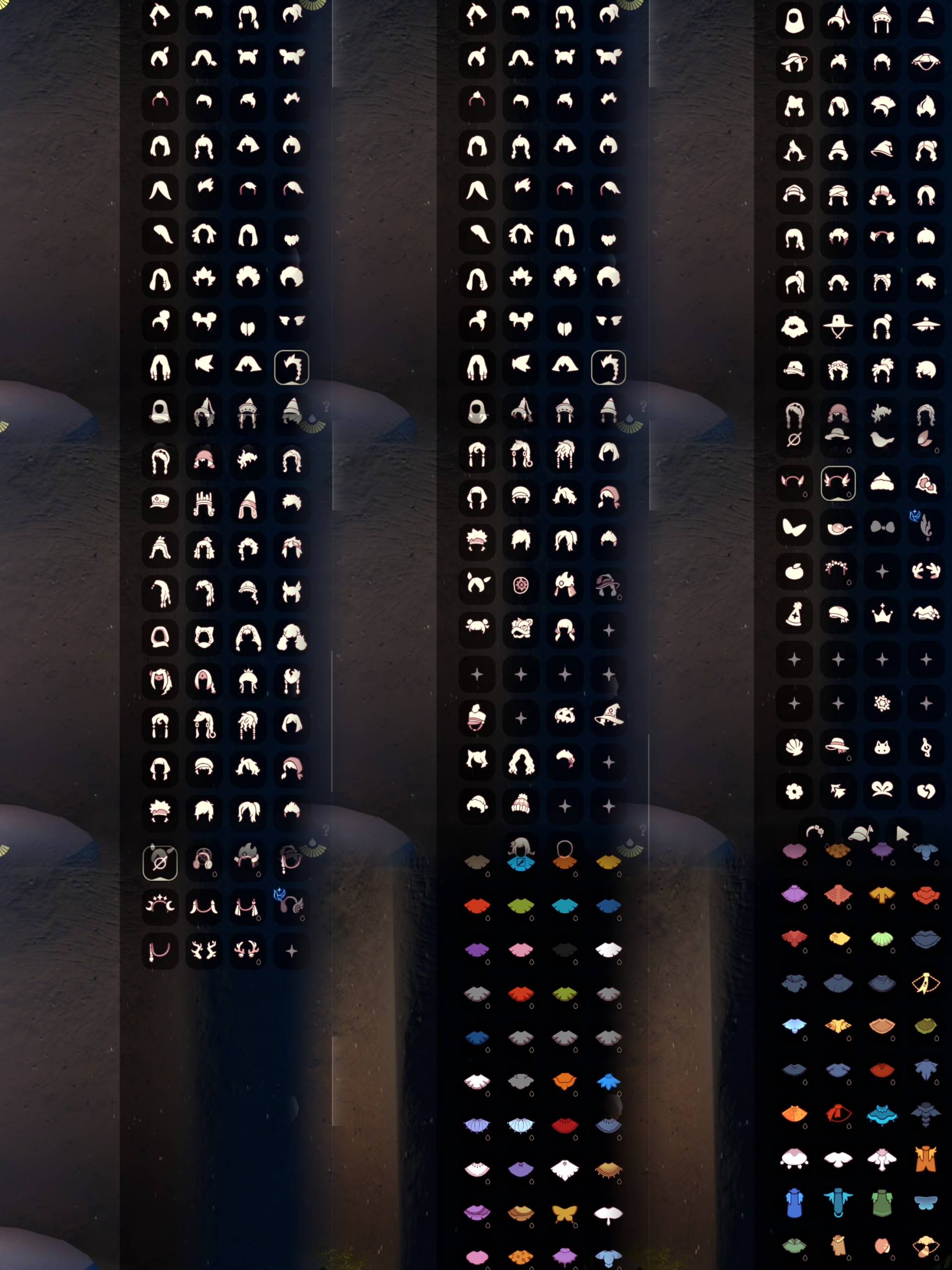 常驻:晨岛/胡子|云野/小飞象|雨林/雨妈|霞谷/平菇/卡卡|暮土/龙骨|禁阁/指甲盖(全图毕业) 季节:圣岛项链/手碟/鲲斗|预言项链/鼓/阿努比斯|梦想项链/凤凰斗|集结项链/锅/麻袋斗|王子项链/王子裤/玫瑰|风项链/黄蓝羽裤|潜海项链/潜水面具|表演项链/白枭|破晓项链/冥龙斗|欧若拉项链/高领舞裤/透明碟翼斗|追忆项链/鲲灯|夜行项链/绒毛斗|拾光项链/相机 礼包:女巫裙|跑鞋|奔离发|福娃|蝙蝠|乌师|朋克|绊爱|橘子|雪花|贝壳|兔子|星月|鹿角|枯角|tgc|创始|围巾|蛛丝|瑞雪|白绒|灯笼|秋千|茶桌|狐狸|南瓜 热门物品:背带裤|武士裤|搓澡巾|矮人|公主|高马尾|花环|虚荣|红耳机|红吉他|复刻火盆|雨伞|笛子|高音钢琴