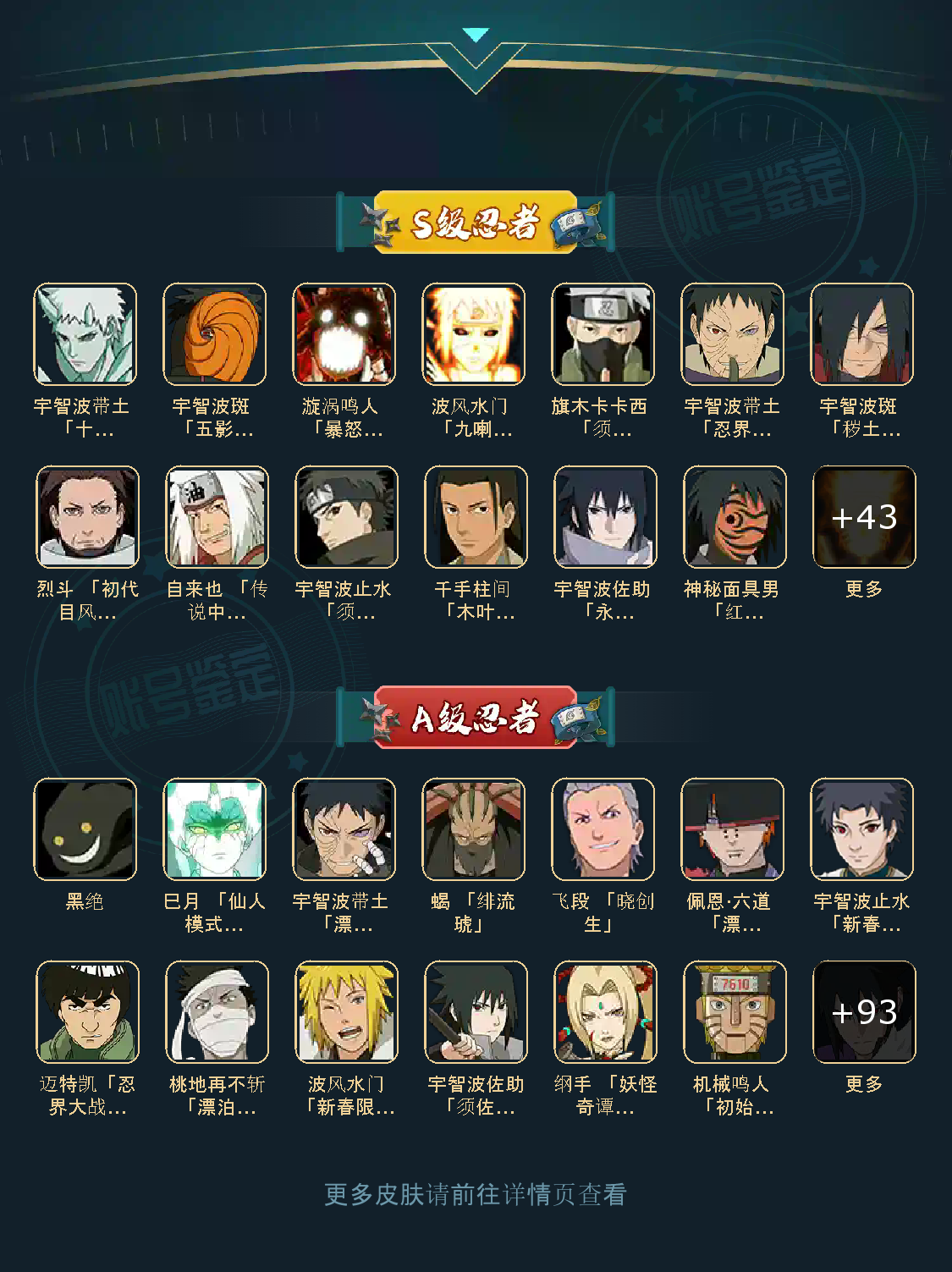 52S 98A 399忍者 宇智波带土「暴怒」/干柿鬼鲛「鲛肌融合」/宇智波佐助「疾风传咒印」/迈特凯「忍界大战」/宇智波带土「忍界大战」/宇智波斑「木叶创立」/佩恩·天道「超」