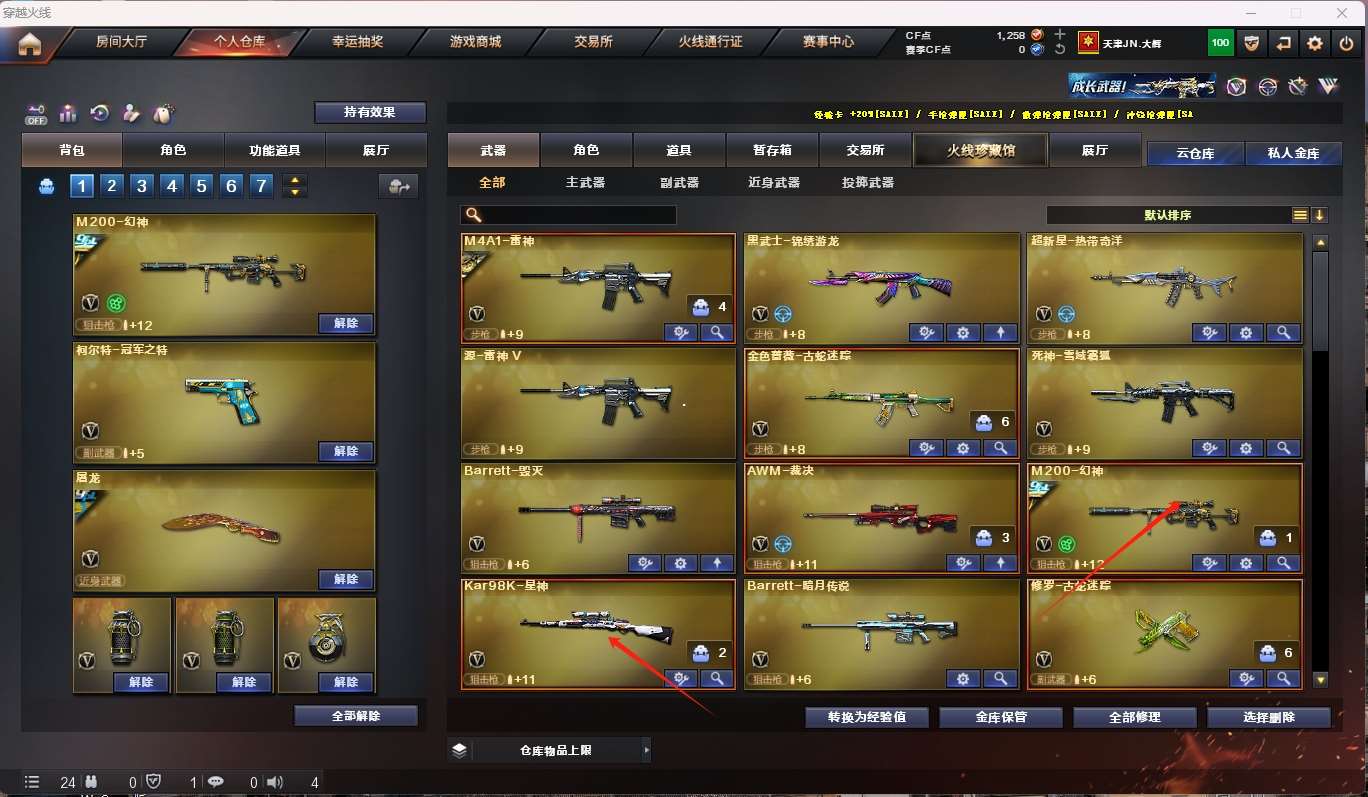 【m200-幻神+音效卡+幻神-冠军之幻】 【98k星神+音效卡】 【雷神】 【毁灭】 【裁决】 【1手呛 冠军之特】 【8近战 屠龙 擎天 炽芒蝶刃蝴蝶刀】 【手雷 雷暴雷】 【四防 王者影豹】 【角色 战地猎狐 奇洋探员 雪域霜狐】 【热带奇洋炫彩背包】
