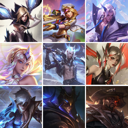 【重要皮肤】灵魂莲华拉克丝至臻 凯旋将军德莱厄斯至臻 黑色玫瑰假面舞会卡特琳娜至臻 双城之战2指挥官凯特琳至臻 T1杰斯至臻 幻灵狮心蕾欧娜至臻 至高天凯尔至臻 西部魔影伊芙琳至臻 天龙之子伊泽瑞尔至臻 神龙尊者比翼之龙洛至臻 心之钢永恩至臻 魔女阿卡丽至臻 玉剑传说琴仙子至臻 斗魂觉醒派克至臻 DRX亚托克斯至臻 墨之影武者亚索至臻 花仙使者卡特琳娜至臻 绝息圣堂厄运小姐至臻 青花瓷丽桑卓至臻 太空律动魔音海妖娜美至臻 灵魂莲华易至臻 海珀利安小队X09星环灵风迦娜至臻 星之守护者艾克至臻 海之歌萨勒芬妮至臻 西部魔影猎天使恶魔泰隆至臻 幻灵战斗猫金克丝至臻 青花瓷拉克丝至臻 神凰行者烈羽焰凰霞至臻 魅惑女巫莫甘娜至臻 女帝黛安娜至臻 魔女婕拉至臻 魔女乐芙兰至臻 未来战士卢锡安至臻 真实伤害亚索至臻 真实伤害赛娜至臻 灵魂莲华提莫至臻 灵能特工伊泽瑞尔至臻 福牛守护者菲奥娜至臻 源计划逆流塞拉斯至臻 源计划阴劫至臻 暗星墨菲特至臻 神龙尊者炎龙瑟提至臻 黑夜使者凯隐至臻 神龙尊者均衡之龙沃利贝尔至臻 征服者贾克斯至臻 飞升战神潘森至臻 焰执事布兰德至臻 KDA二代卡莎至臻 KDA一代卡莎至臻 KDA阿狸至臻 KDA伊芙琳至臻 KDA阿卡丽至臻 烈焰美人薇恩至臻 电玩女神凯特琳至臻 星之守护者妮蔻至臻 源计划正义艾瑞莉娅至臻 绒毛菲兹至臻 玉剑传说武剑仙至臻 腥红之月亚托克斯至臻 殿堂传奇乐芙兰 灰烬骑士莫德凯撒 灰烬骑士派克 灰烬杀手塞拉斯 海克斯科技安妮 海克斯科技吉格斯 海克斯科技嘉文四世 海克斯科技崔丝塔娜 水晶掠夺者卡兹克 暗星科加斯 黎明使者卡尔玛 恐惧新星德莱厄斯 摄魂使者薇恩 新创战纪希维尔 胜利剑圣易 胜利女神娑娜 胜利女神希维尔 胜利之王泰达米尔 胜利巨口克格莫 荣誉使者玛尔扎哈 养蜂人辛吉德 电玩女神厄运小姐 海珀利安小队Z01猎户座卢锡安 女帝格温 玉剑传说神机花火 玉剑传说无劫 玉剑传说舞龙卫 玉剑传说星仙子 玉剑传说翼剑仙 黎明使者薇恩 天龙之子卡莎 天龙之子斯莫德 天龙之子伊泽瑞尔 定海神珍孙悟空 玉净夜叉凯特琳 胜利女神瑟庄妮 胜利女神奥莉安娜 胜利之剑亚托克斯 甜心之翎洛 甜心宝贝娑娜 水晶玫瑰婕拉 水晶玫瑰斯维因 冬季仙境奥莉安娜 冰雪风暴希维尔 冬季仙境卡尔玛 狂心冰王图奇 魄罗骑士瑟庄妮 平安夜女神娑娜 圣诞糖果棒厄运小姐 大魔法锅布里茨 死亡誓约劫 灵魂收割者索拉卡 克烈古拉伯爵 海之歌艾希 海之歌奈德丽 泳池派对菲奥娜 泳池派对格雷福斯 泳池派对李青 泳池派对蕾欧娜 泳池派对布隆 克格汪 DRX凯特琳 EDG佛耶戈 iG卡莎 SKTT1辛德拉 SKTT1娜美 SKTT1阿利斯塔 SKTT1瑞兹 SKTT1雷克顿 SSW雷恩加尔 SSW图奇 SSW辛吉德 SKTT1贾克斯 SKTT1劫 SKTT1婕拉 SKTT1李青 暗杀星奥莉安娜 暗杀星蒙多 暗杀星努努和威朗普 暗杀星伊泽瑞尔 暗杀星慎 Fnatic迦娜 Fnatic库奇 Fnatic古拉加斯 Fnatic卡尔萨斯 冰雪节格雷福斯 冰雪节辛吉德 防暴士兵辛吉德 防暴天使凯尔 冠军典狱长锤石 冠军掠夺者卡兹克 冠军之矛卡莉丝塔 冠军之血希瓦娜 冠军之隐劫 春晖海神卡兹克 鬼影森森茂凯 鬼影重重魔腾 海贼瑞兹 红桃杰克崔斯特 胡桃夹子萨科 警用试作体K9内瑟斯 密林猎手提莫 女猎手希维尔 圣诞精灵崔丝塔娜 圣诞开心鬼提莫 圣诞狂欢努努和威朗普 圣诞老人古拉加斯 圣诞玩偶波比 圣诞驯鹿克格莫 无头骑士赫卡里姆 喜庆之树茂凯 雪默丁格 雪装奈德丽 野兽猎人德莱文 野兽猎人泰达米尔 英勇玩具兵普朗克 征服者韦鲁斯 暗影沃里克 阿木木主人不要我了 波比的巧克力工坊 地底世界崔斯特 都铎王朝图奇 十五周年纪念希维尔 十周年纪念安妮 源代码乐芙兰 神凰行者瑞羽圣凰艾尼维亚 胜利凤凰艾尼维亚 斗魂觉醒佛耶戈 大元素使拉克丝 绝息圣堂洛