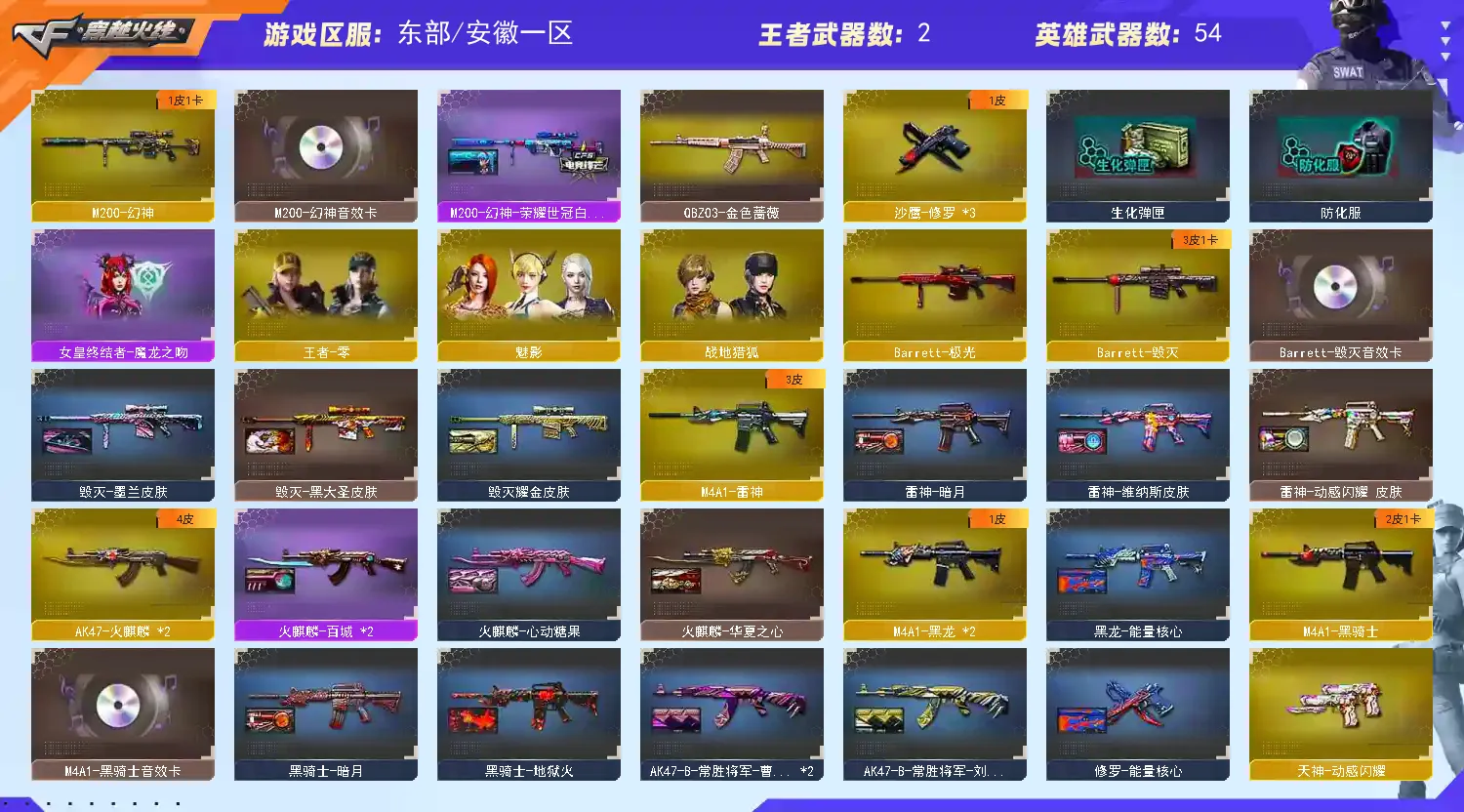 幻神+荣雄世冠白鲨+音效卡 王者冰魄觉醒版 毁灭+墨兰+音效卡 黑骑士+音效卡 HK417朱雀 QBZ金色蔷薇 3修罗+云海游龙音效卡 CAT 炫金火麒麟 炫金毁灭 王者之味觉醒版 王者零