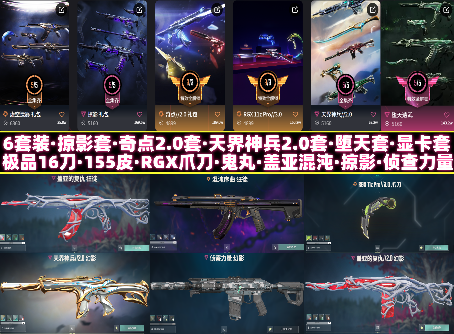 【当前段位:黄金III】极品16刀155皮肤⚡6套装⚡爪刀鬼丸蝴蝶刀⚡盖亚混沌侦查力量⚡RGX显卡套⚡堕天遗武套⚡天界神兵套