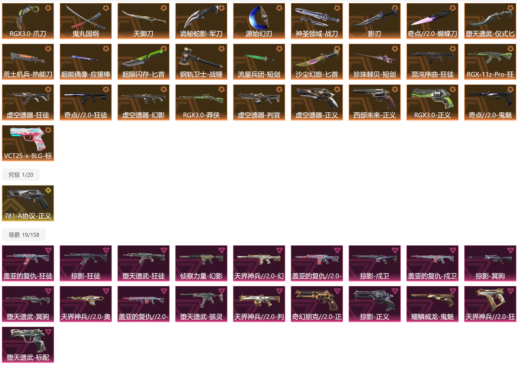 - 卓越武器数量: 19