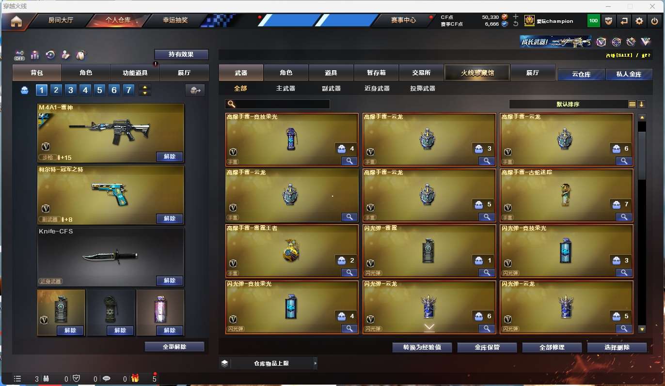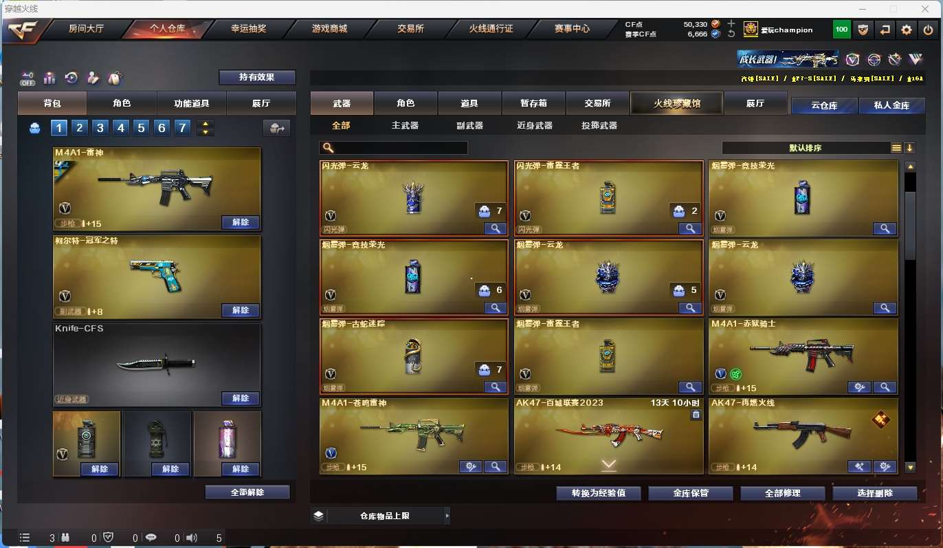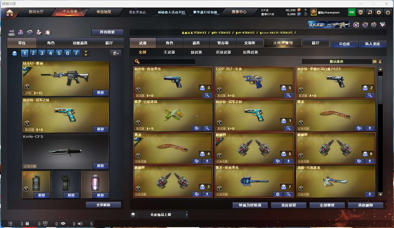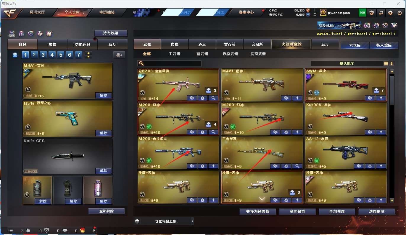 m200-幻神+音效卡+幻神-ag17冠军+幻神-星耀+cfs2022】 【竞技荣光套】 【98k星神+音效卡】 【王者星霆】 【scar白虎+音效卡+白鲨2023冠军+巅峰荣耀】 【qbz金色蔷薇+cfs2024+冠军之薇】 【火麒麟+巅峰荣耀】 【雷神+雷神-白鲨14冠军+雷神-荣耀之魄】 【黑骑士】 【裁决+巅峰荣耀】 【无影 天启 超新星 】 【8手呛 天神*3 cop云龙 柯尔特荣耀世冠白鲨2023 冠军之特】 【7近战 屠龙*2 麒麟刺*3】 【手雷 竞技荣光 云龙雷*2】 【角色 云悠悠 晴雅 奇洋探员 乔伊教练 蛇隐宗 修道士 雪域霜狐】 【幻神音效卡 98k星神音效卡
