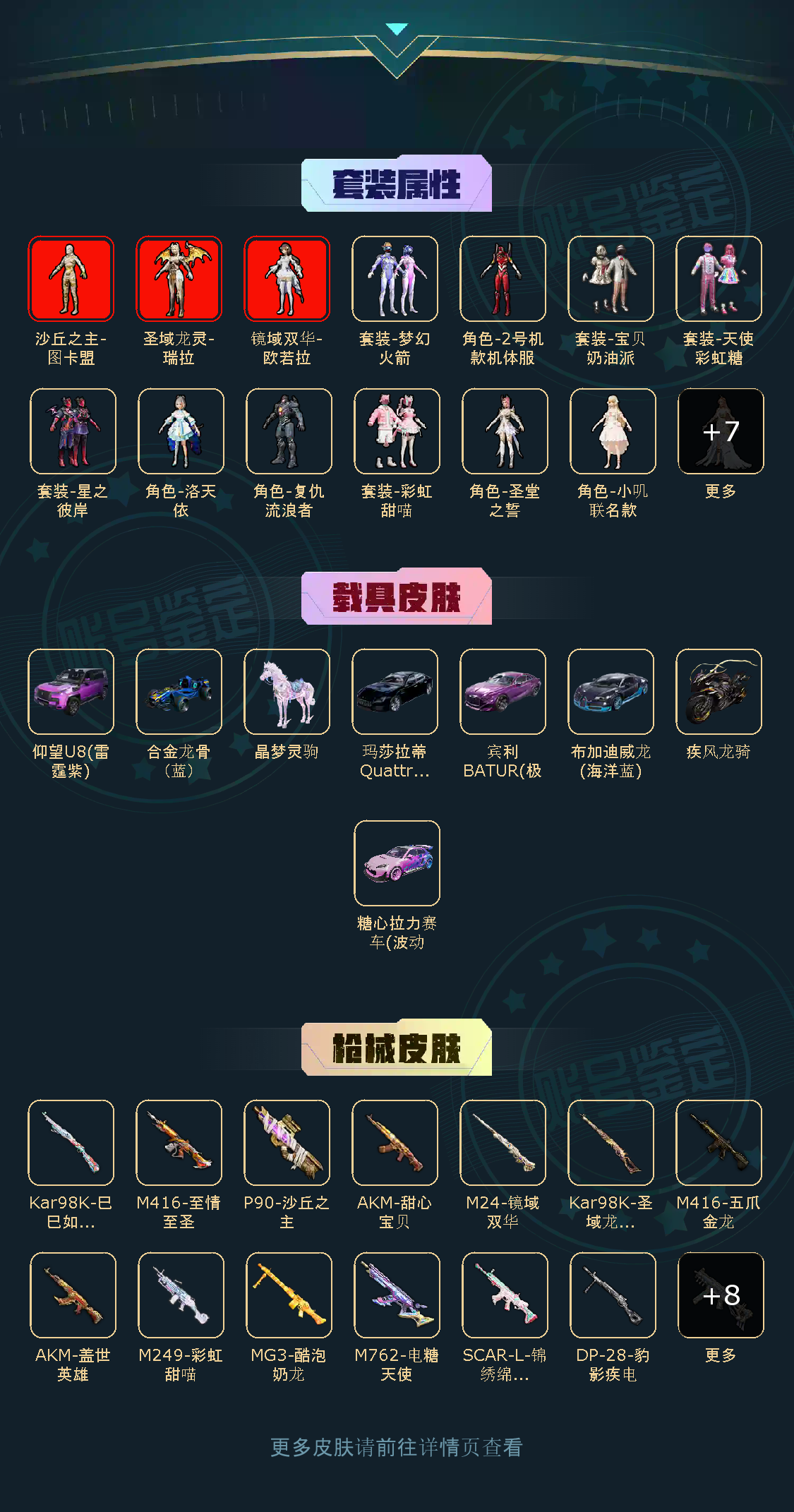 19粉,8载具,149套装,13王牌印记,无敌战神历史最高段,98877热力值 AKM-盖世英雄/AKM-甜心宝贝/SCAR-L-梦幻火箭/AUG-星之彼岸/M762-电糖天使/GROZA-旋转彩虹/M416-五爪金龙/M416-墨龙九天/SCAR-L-锦绣绵绵/M416-至情至圣/M762-苔丝玫瑰/AKM-梦之光华/M249-彩虹甜喵/MG3-酷泡奶龙/UMP45-相思残雪/P90-沙丘之主/破片手榴弹-粉粉猫爪/Kar98K-圣域龙灵/Kar98K-巳巳如意/M24-镜域双华/玛莎拉蒂Quattroporte夜幕蓝/仰望U8(雷霆紫)/合金龙骨(蓝)/糖心拉力赛车(波动紫)/宾利BATUR(极速紫)/布加迪威龙(海洋蓝)/晶梦灵驹/疾风龙骑/