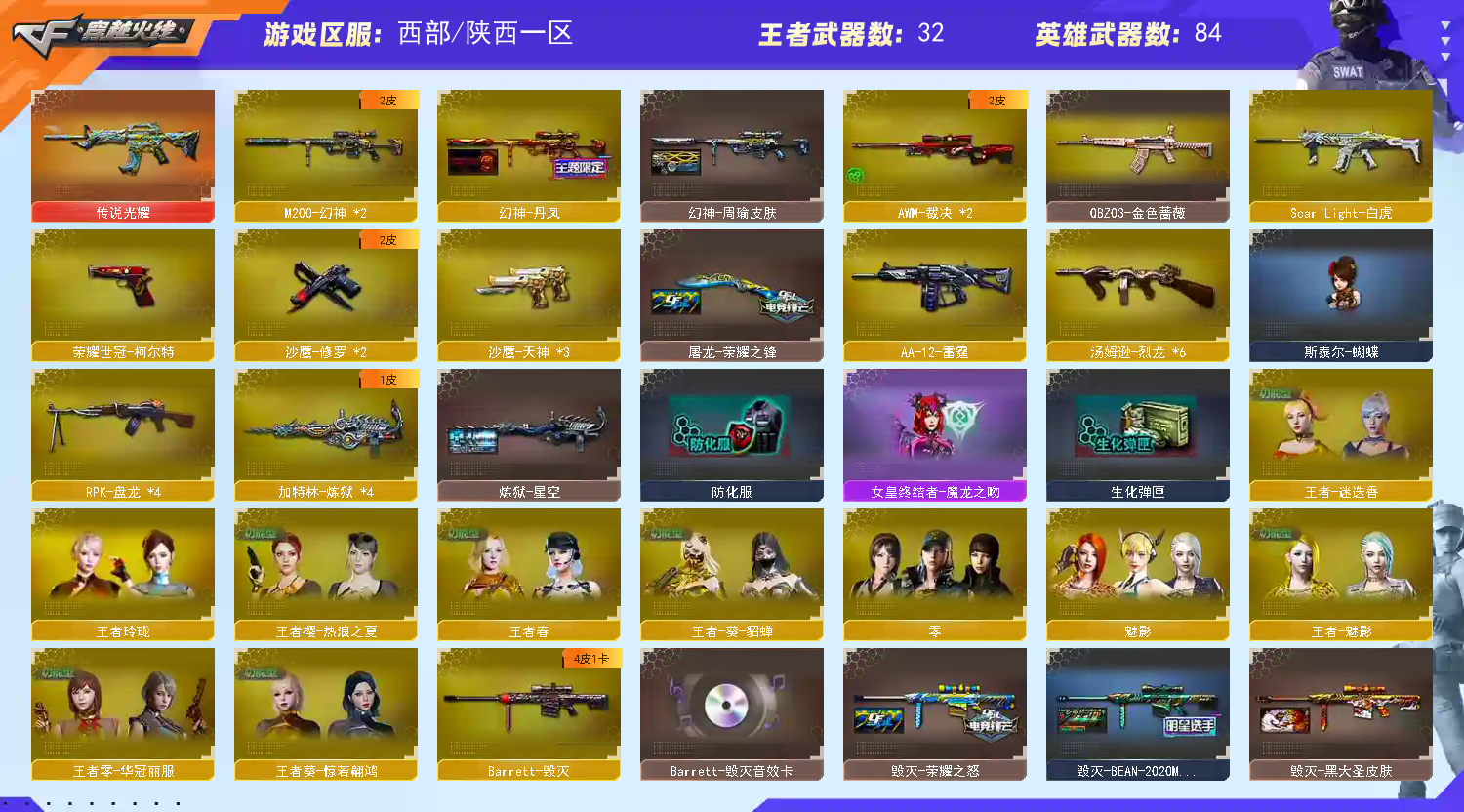 西部陕西一区幻神➕丹凤➕周瑜➕光耀朱雀白虎世冠雷神柯尔特龙啸王者蔷薇➕炫金黑龙炫金雷神炫金骑士炫金毁灭炫金天龙➕暴君乱世超越Max斯泰尔蝴蝶死亡之眼➕火麒麟冠军之心➕华夏之心➕世冠AG➕巅峰荣耀➕黑龙墨子➕雷神荣耀之魄➕世冠AG➕毁灭荣耀之怒➕毁灭绿豆➕2018➕六烈龙各种光效各种玩偶